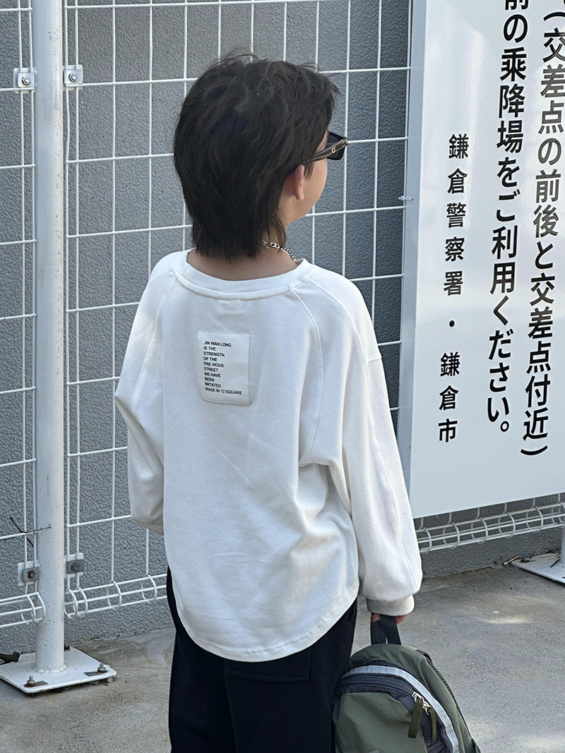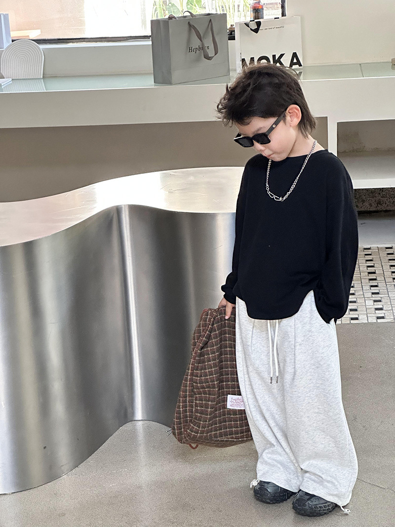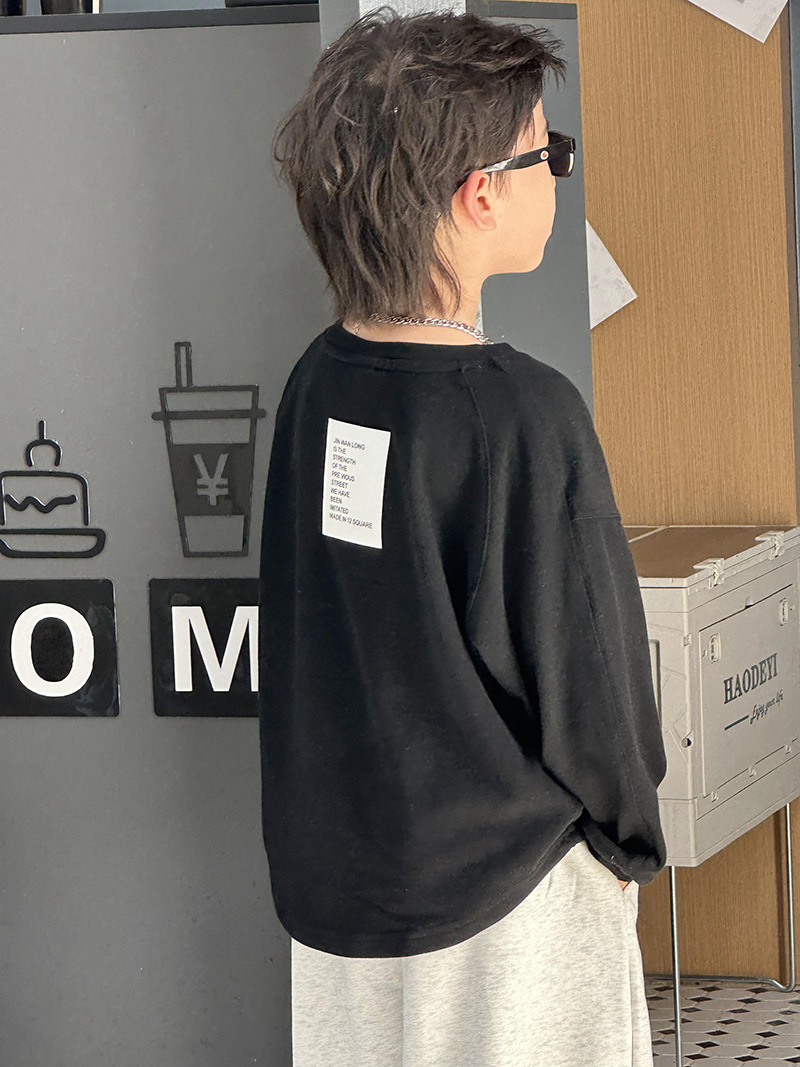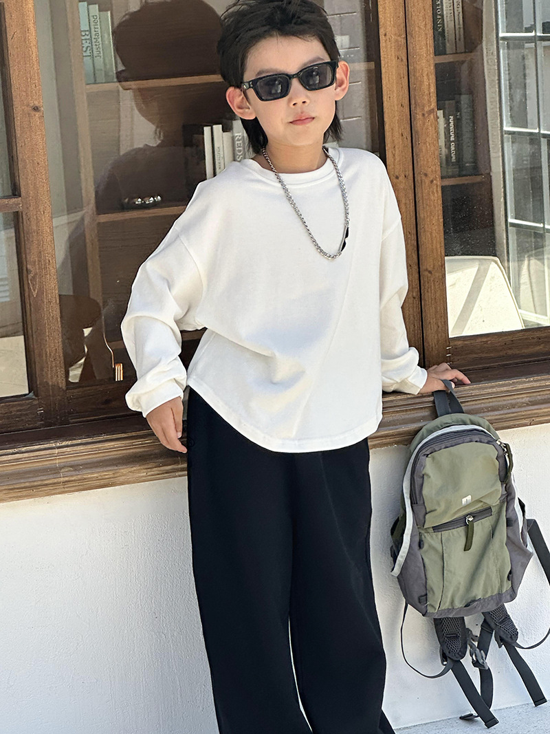 어린이 최고 가을베이스 셔츠 소년 단색 긴팔 티셔츠 여성용 아기 피부 친화적 인 편안한 내부 느슨한 풀오버 T