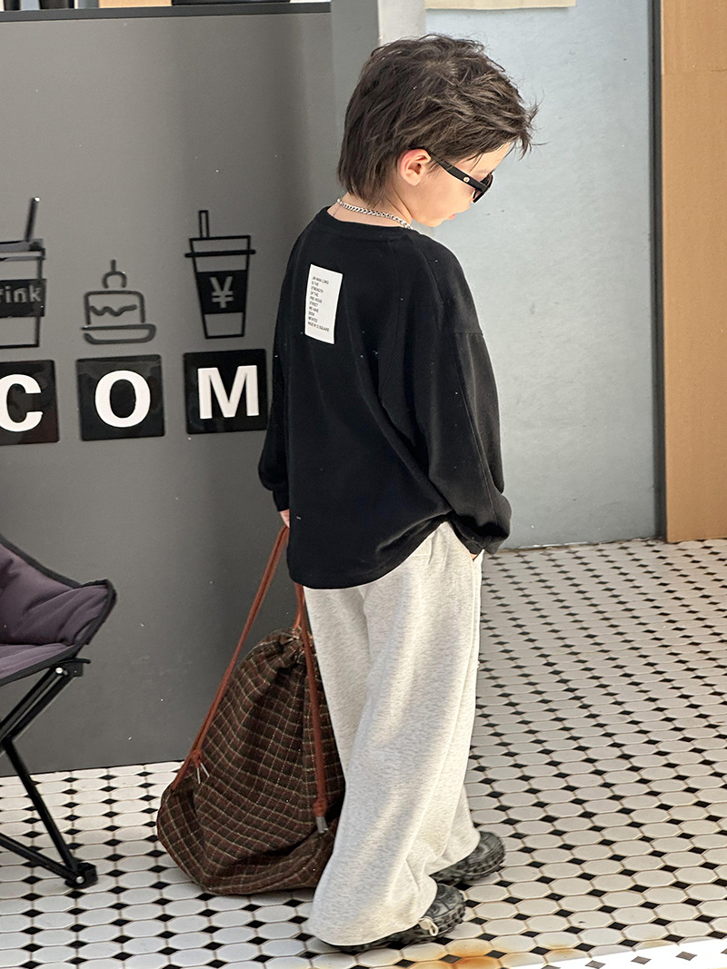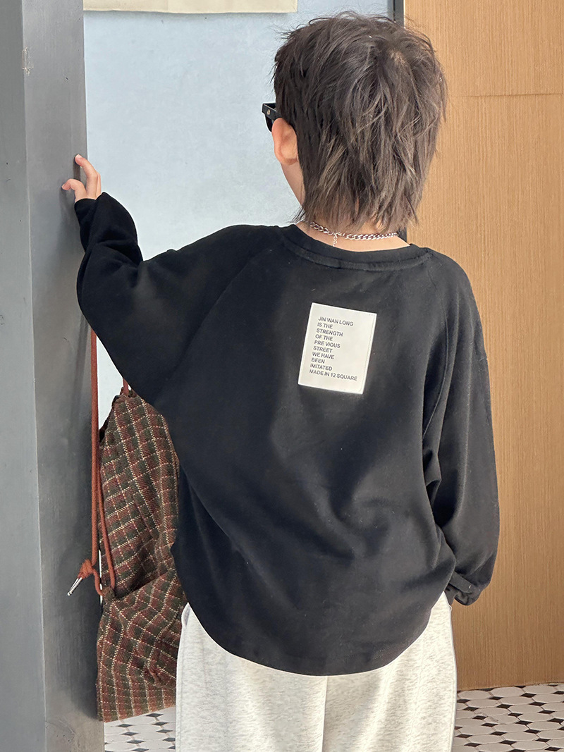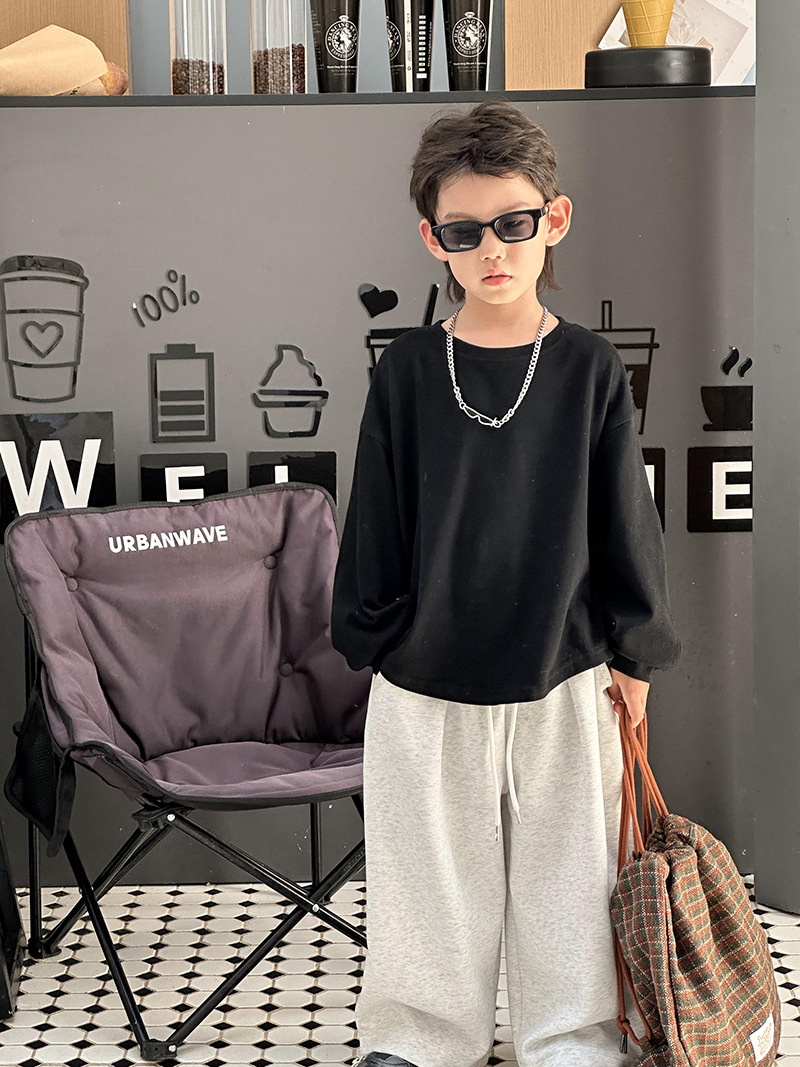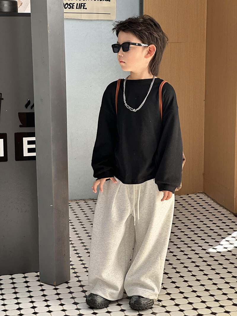 어린이 최고 가을베이스 셔츠 소년 단색 긴팔 티셔츠 여성용 아기 피부 친화적 인 편안한 내부 느슨한 풀오버 T
