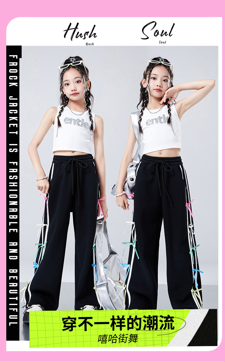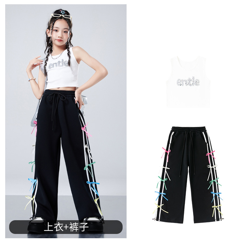 여자 재즈 댄스 의상 어린이 거리 댄스 어린이 패션 의상 소녀 세트 공연 어린이 의류 힙합 쇼 의상