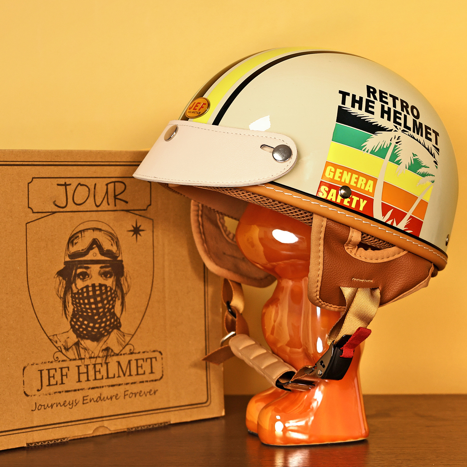 대만 JEF 헬멧 레트로 하프 헬멧 오토바이 기관차 전기 경량 3C 인증 헬멧 여름 남녀스토어 가기