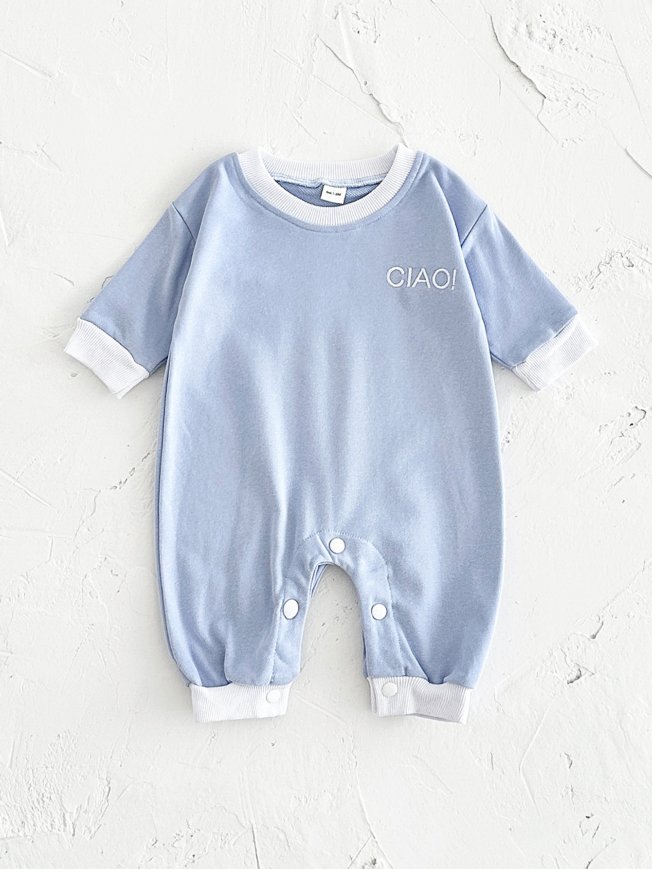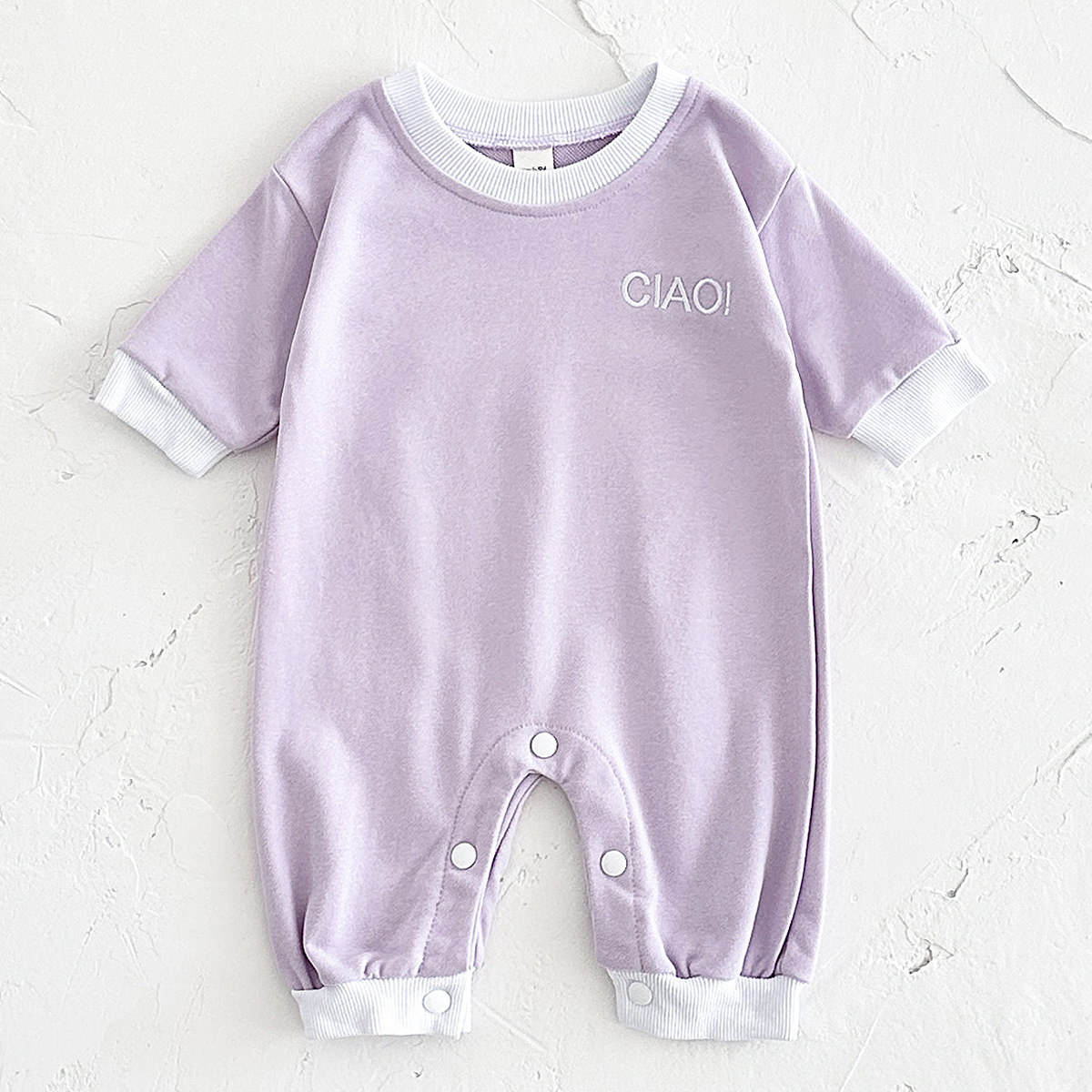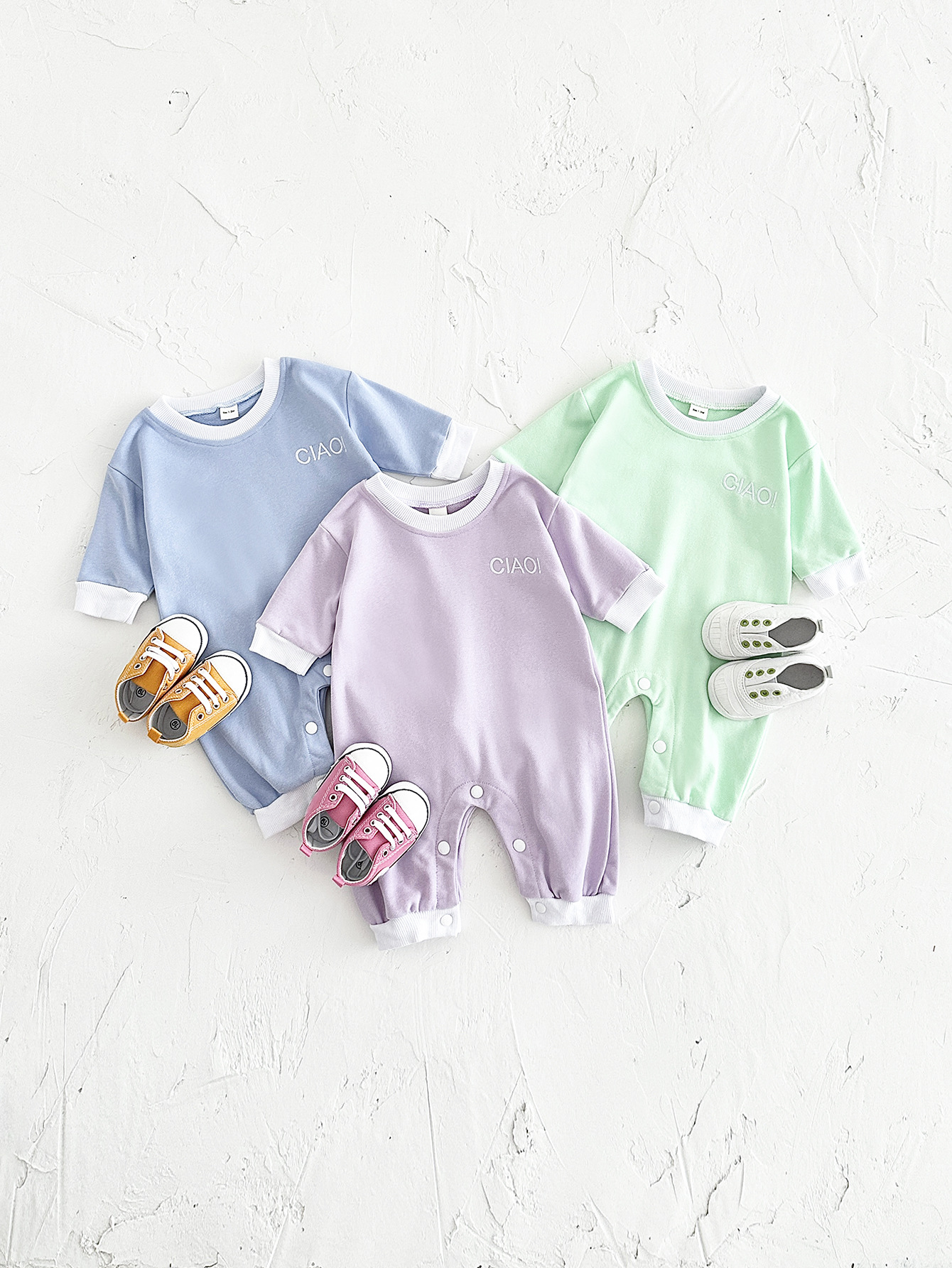국경 간 봄과 가을 신생아 아기 단색 반소매 등반 세트 아기 승무원 가방 뚱뚱한 옷베이스 옷 홈 옷스토어 가기