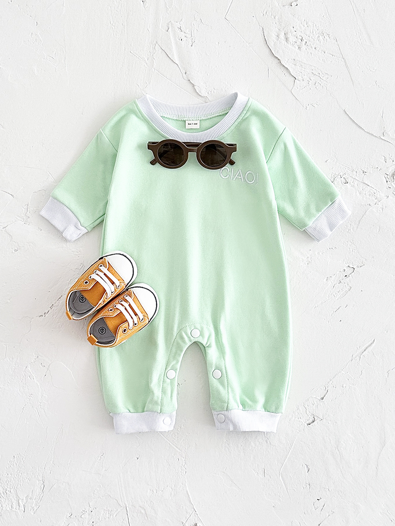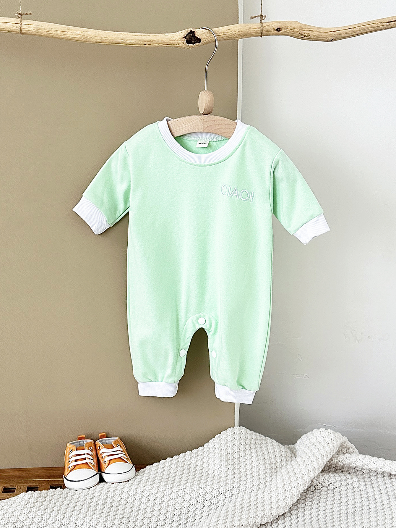 국경 간 봄과 가을 신생아 아기 단색 반소매 등반 세트 아기 승무원 가방 뚱뚱한 옷베이스 옷 홈 옷