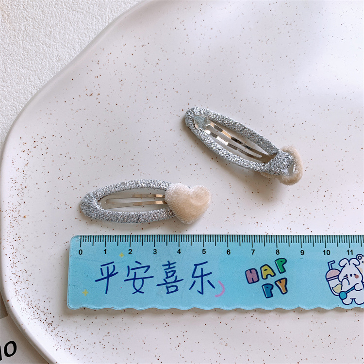 달콤한 어린이 벨벳 사랑 헤어핀 소녀의 복숭아 하트 뱅이 깨진 머리 BB 클립 페어 사이드 헤어핀 헤드웨어