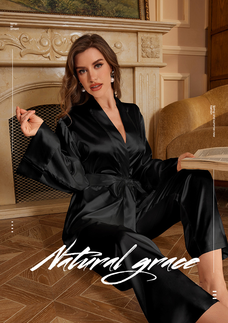 야오야오 신상 세트 고급스러운 단색 잠옷 바지 우아하고 세련된 홈웨어 투피스 세트 TZ3380스토어 가기