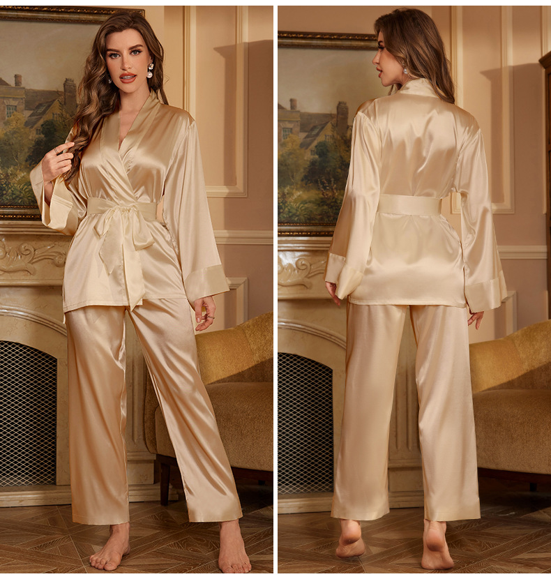 야오야오 신상 세트 고급스러운 단색 잠옷 바지 우아하고 세련된 홈웨어 투피스 세트 TZ3380