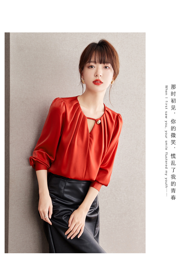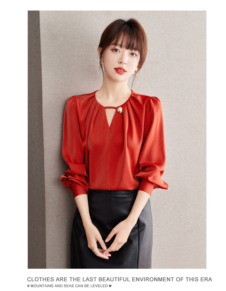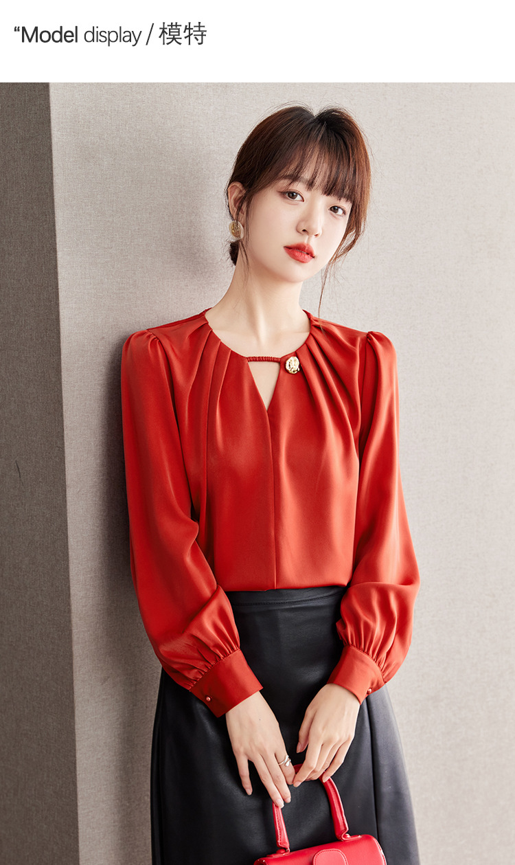 2025 가을 새로운 프랑스어 복고풍 긴팔 쉬폰 셔츠 여성 통근 셔츠 바닥 셔츠 슬리밍 배꼽 덮는 셔츠스토어 가기