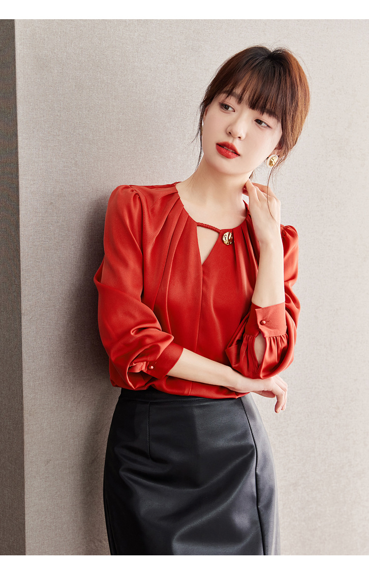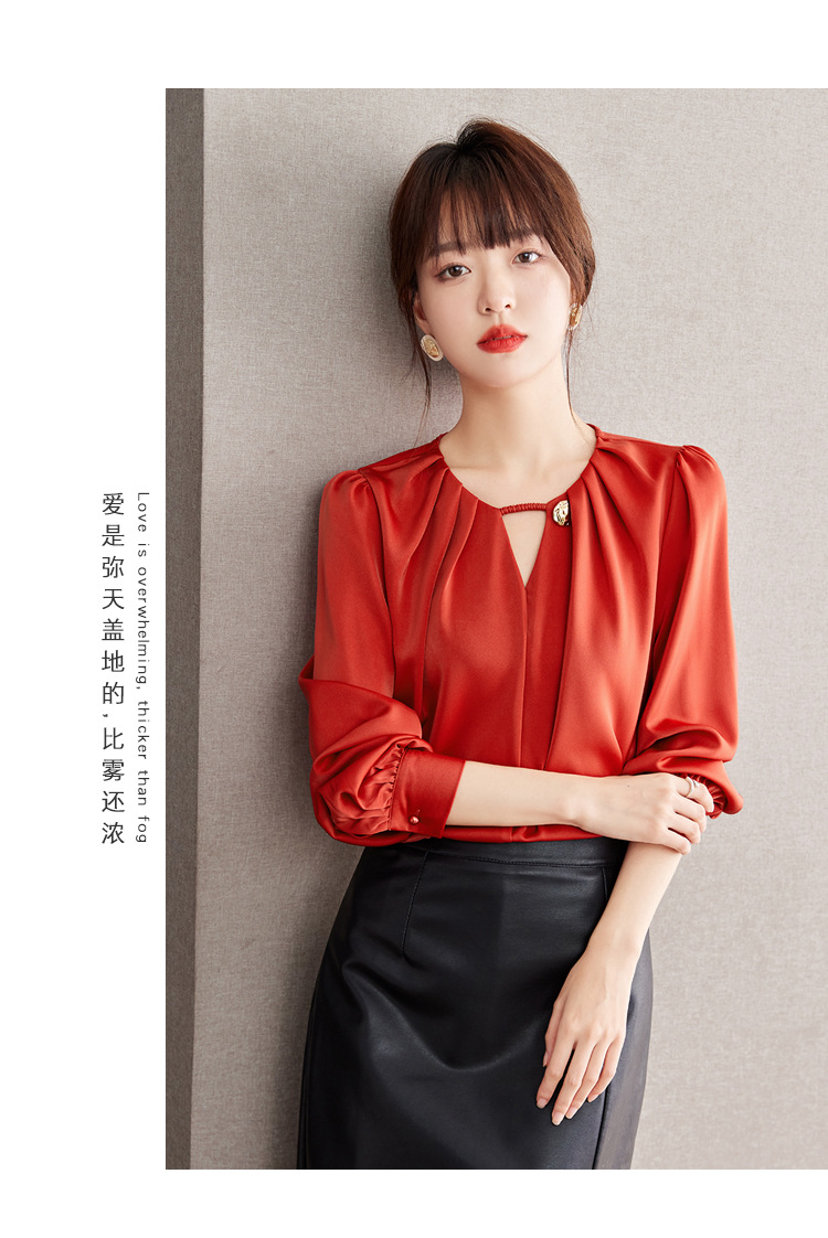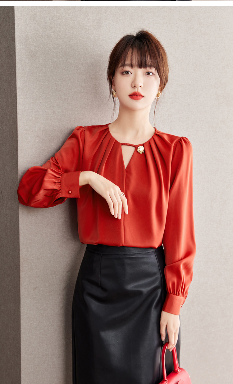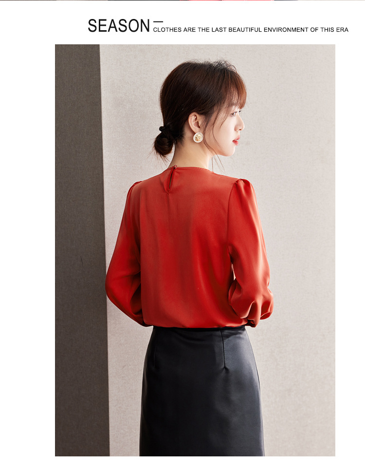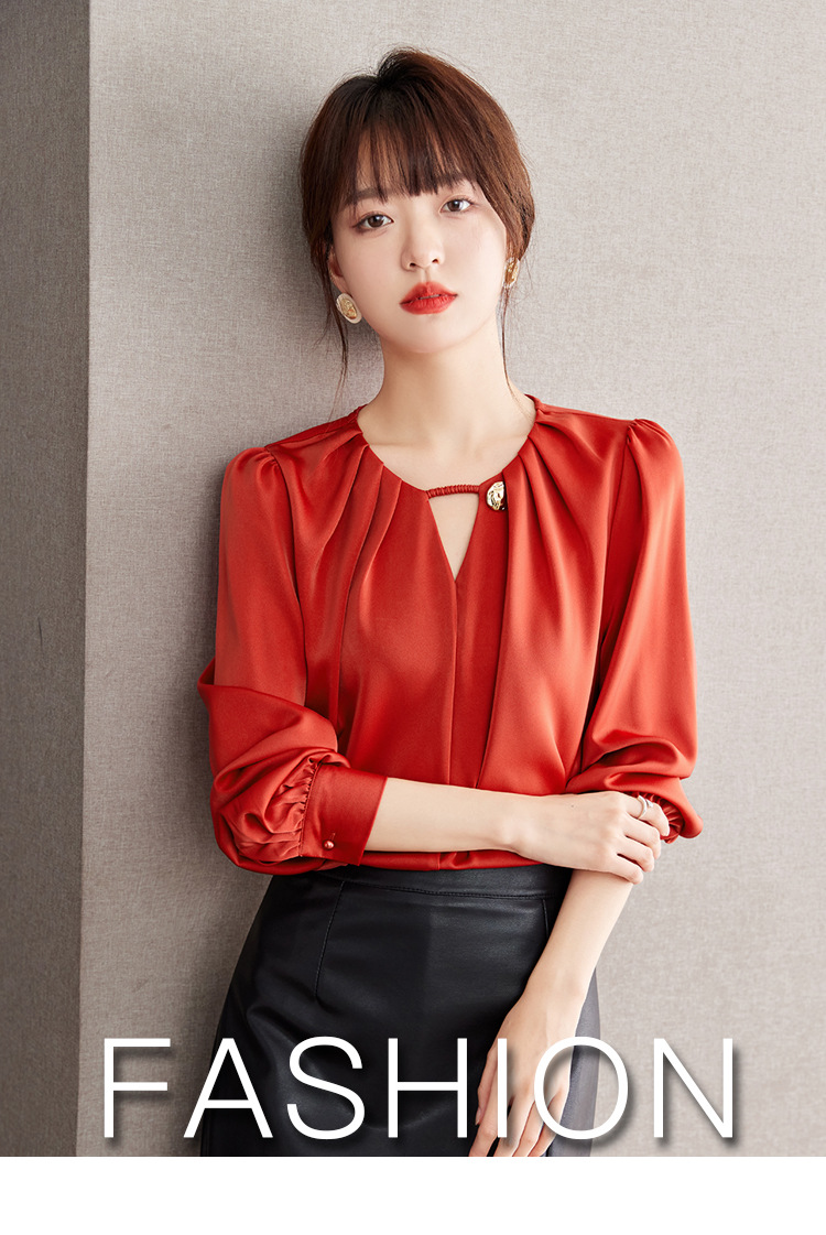 2025 가을 새로운 프랑스어 복고풍 긴팔 쉬폰 셔츠 여성 통근 셔츠 바닥 셔츠 슬리밍 배꼽 덮는 셔츠