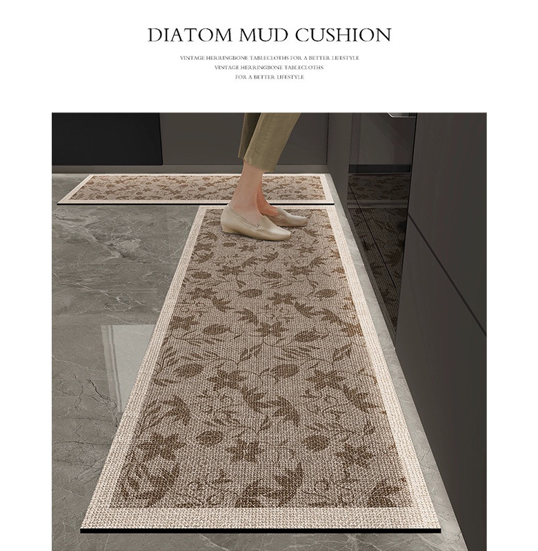 일본식 주방 바닥 매트 흡수성 및 오일 흡수성 규조류 진흙 바닥 매트 2 피스 조합 미끄럼 방지 발 매트 빠른 건조 욕실 매트스토어 가기
