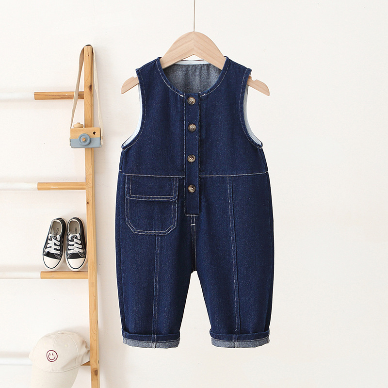 한국 아동복 2024 가을 어린이 멜빵 한국판 소년 소녀 데님 멜빵 다재다능한 데님 점프 수트
