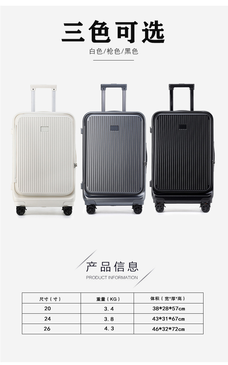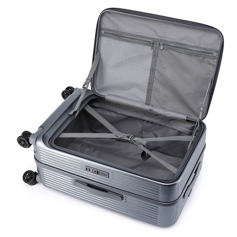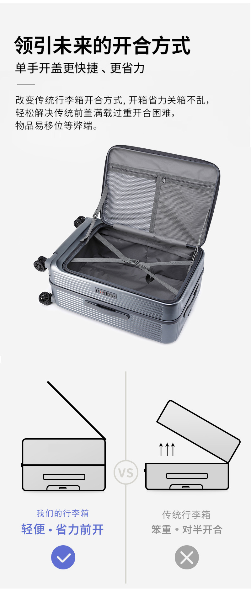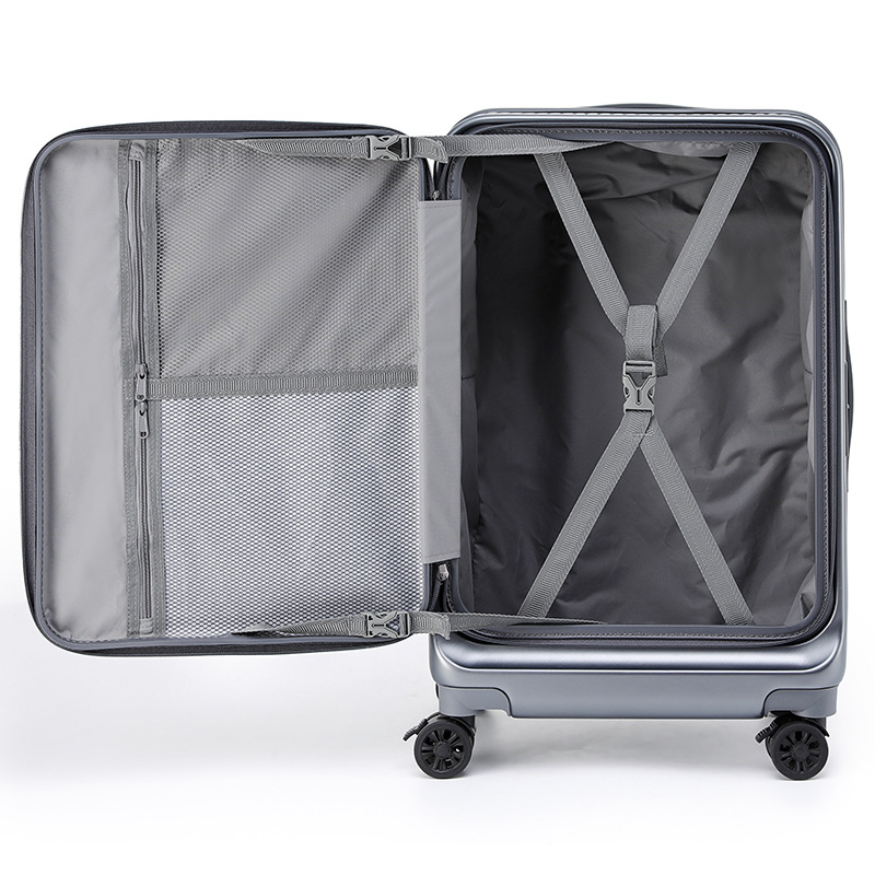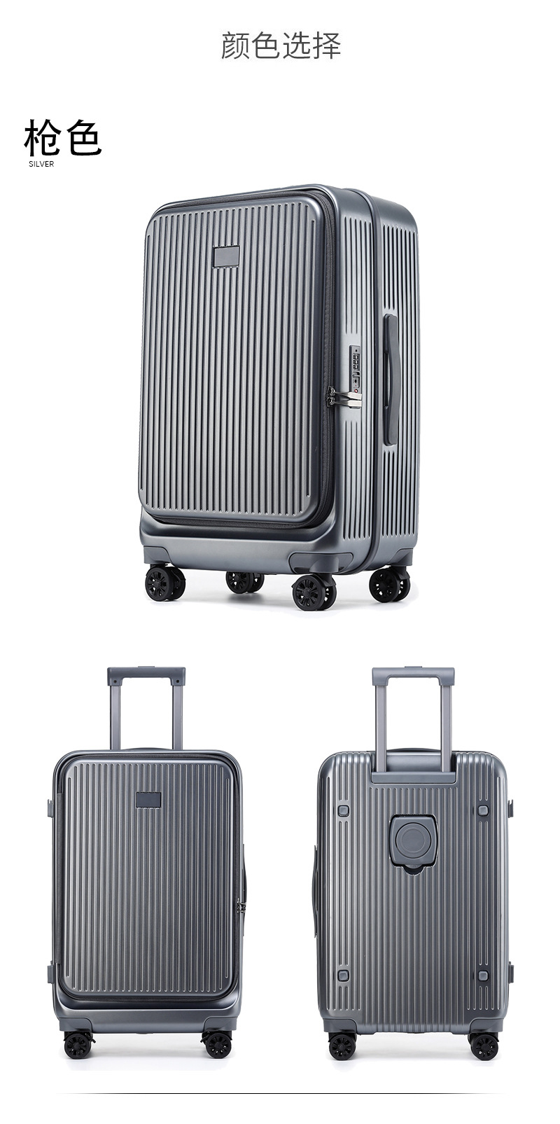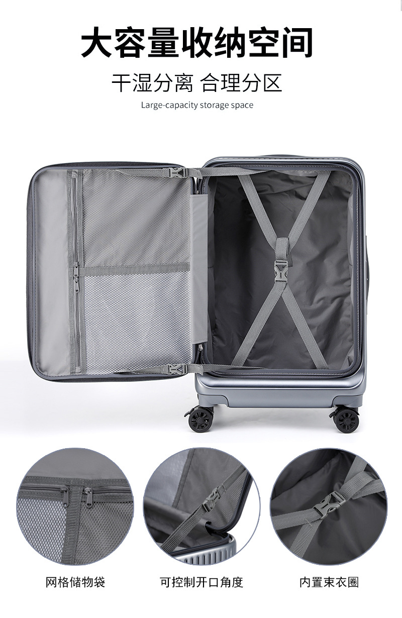 다기능 여행 가방 전면 독립 구획 컴퓨터 케이스 USB 충전 비즈니스 알루미늄 프레임 트롤리 케이스 충격 흡수 탑승 케이스