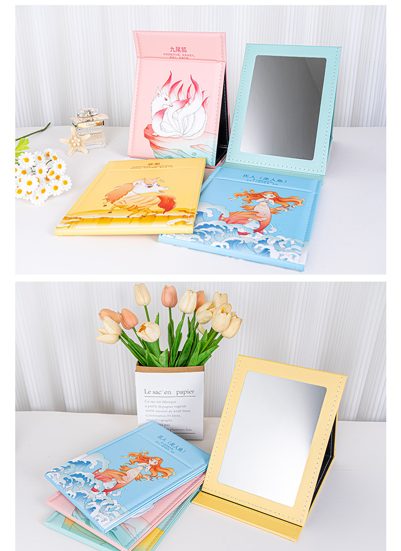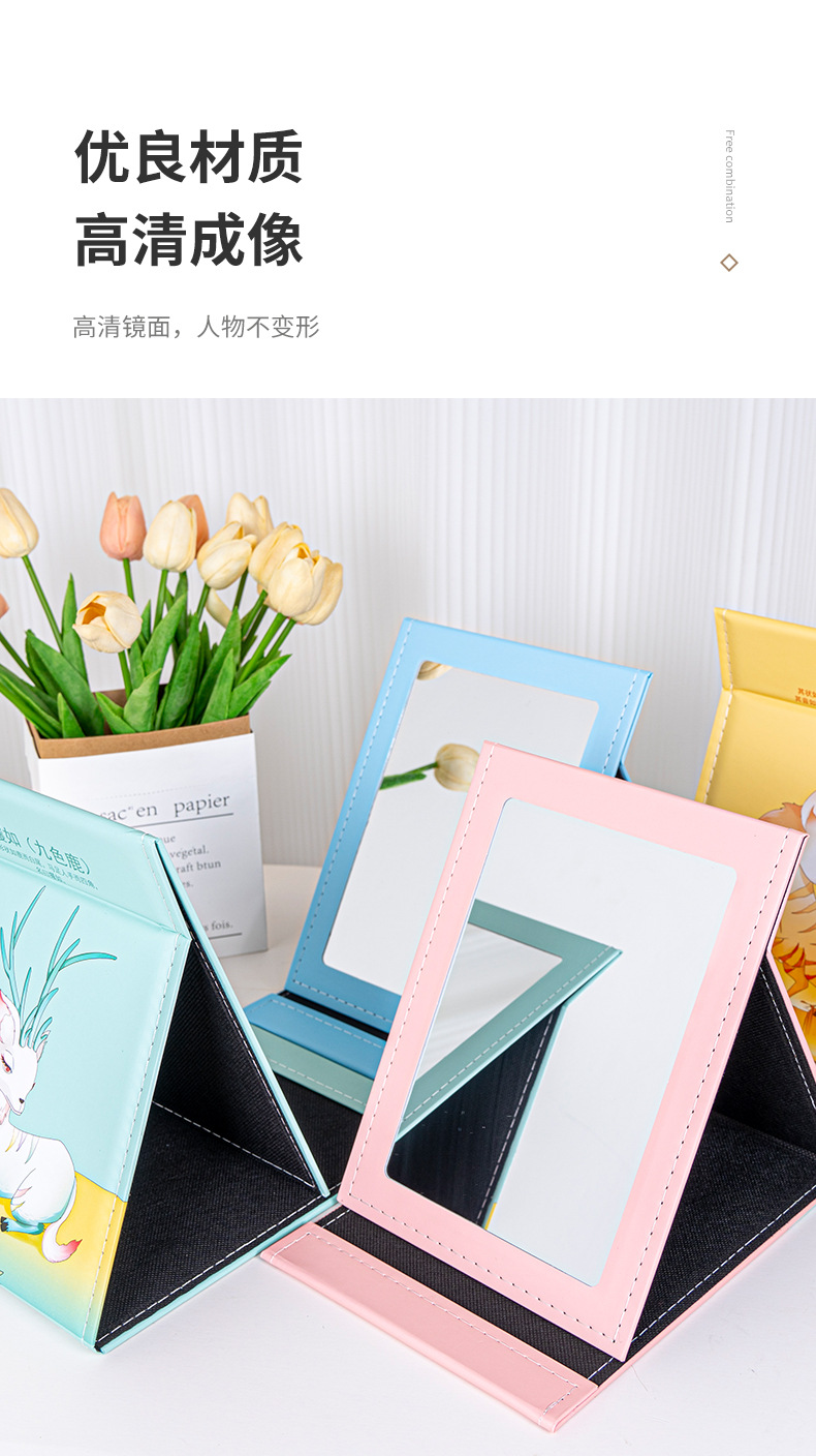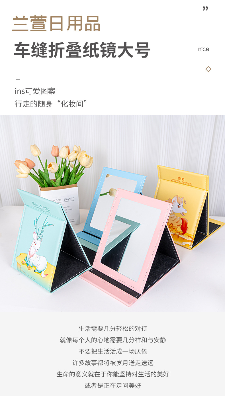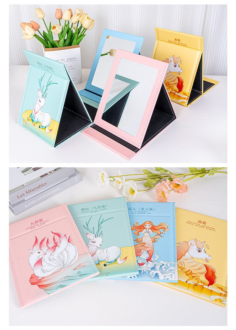 대형 접이식 휴대용 종이 거울, 학생용 동물 귀여운 소녀 감성 탁상 거울, 접이식 거울스토어 가기