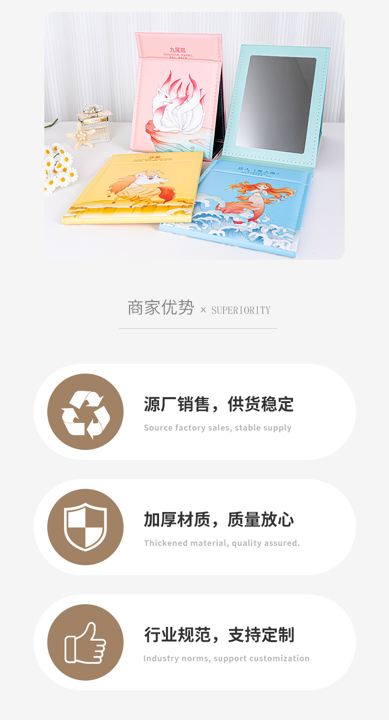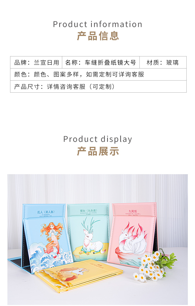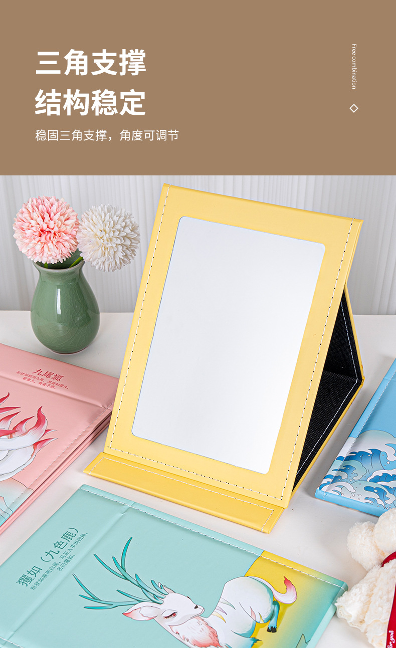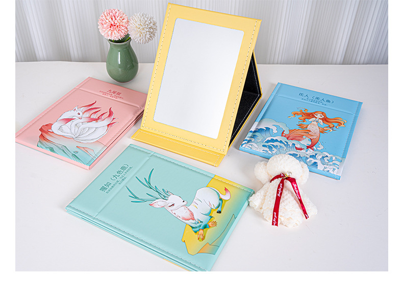 대형 접이식 휴대용 종이 거울, 학생용 동물 귀여운 소녀 감성 탁상 거울, 접이식 거울스토어 가기