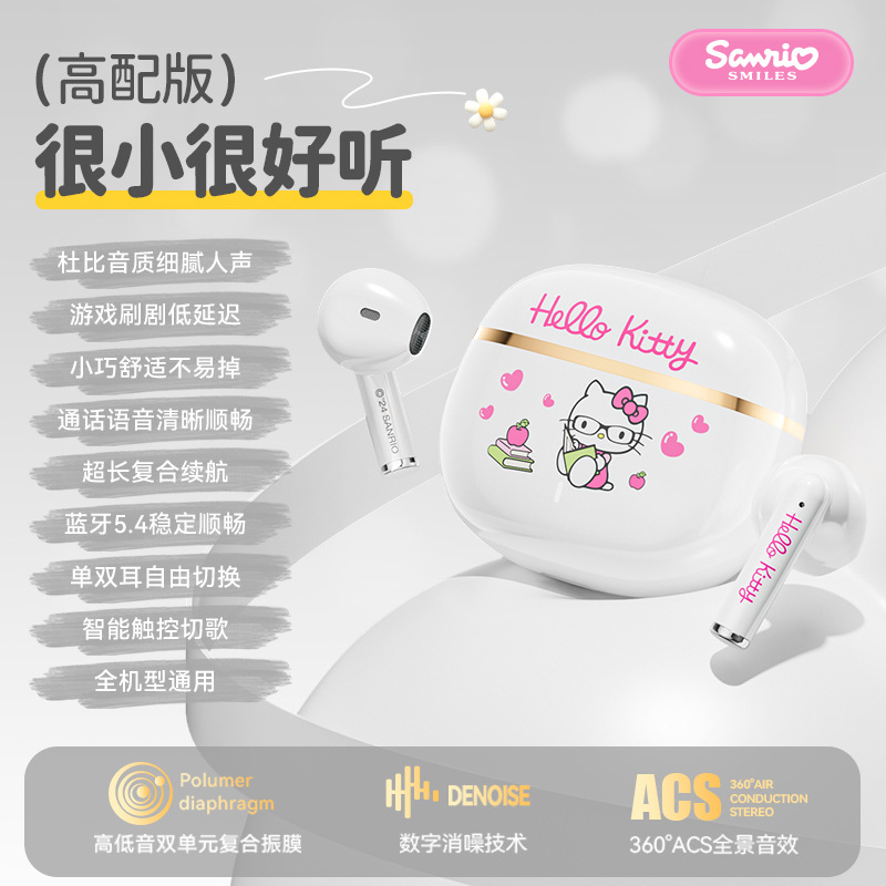 산리오 블루투스 헤드셋, 매우 긴 배터리 수명, 진정한 무선 골전도, 미니, 소음 감소, 우수한 음질, 스포츠 및 게임용 헤드셋