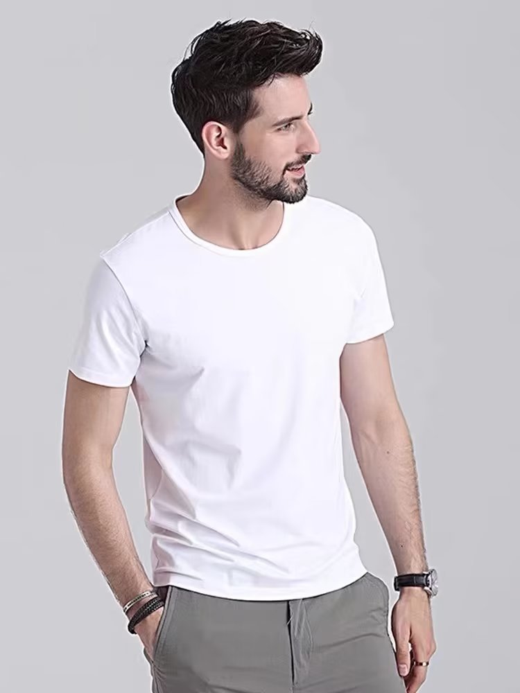 솔리드 컬러 기본 티셔츠 여름 남자의 반팔 슬림-맞는 내면베이스 셔츠 유행 흰색 반소매 티셔츠 올 매치스토어 가기