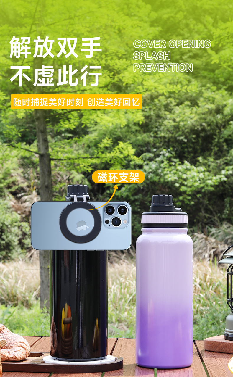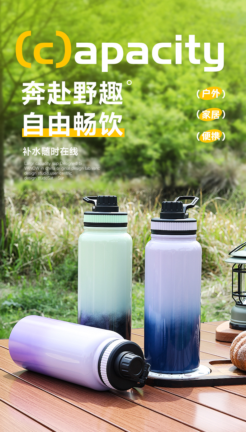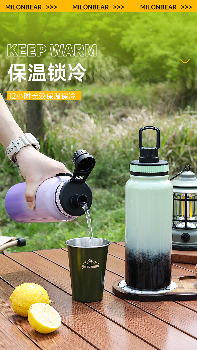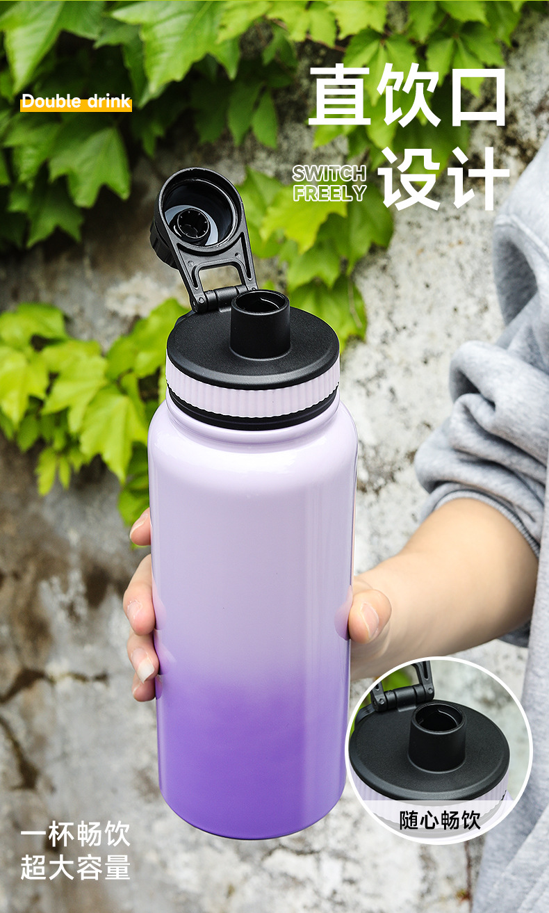 국경 304 스테인레스 스틸 우주 주전자 대용량 더블 레이어 진공 스포츠 주전자 야외 등산 휴대용 보온병 컵