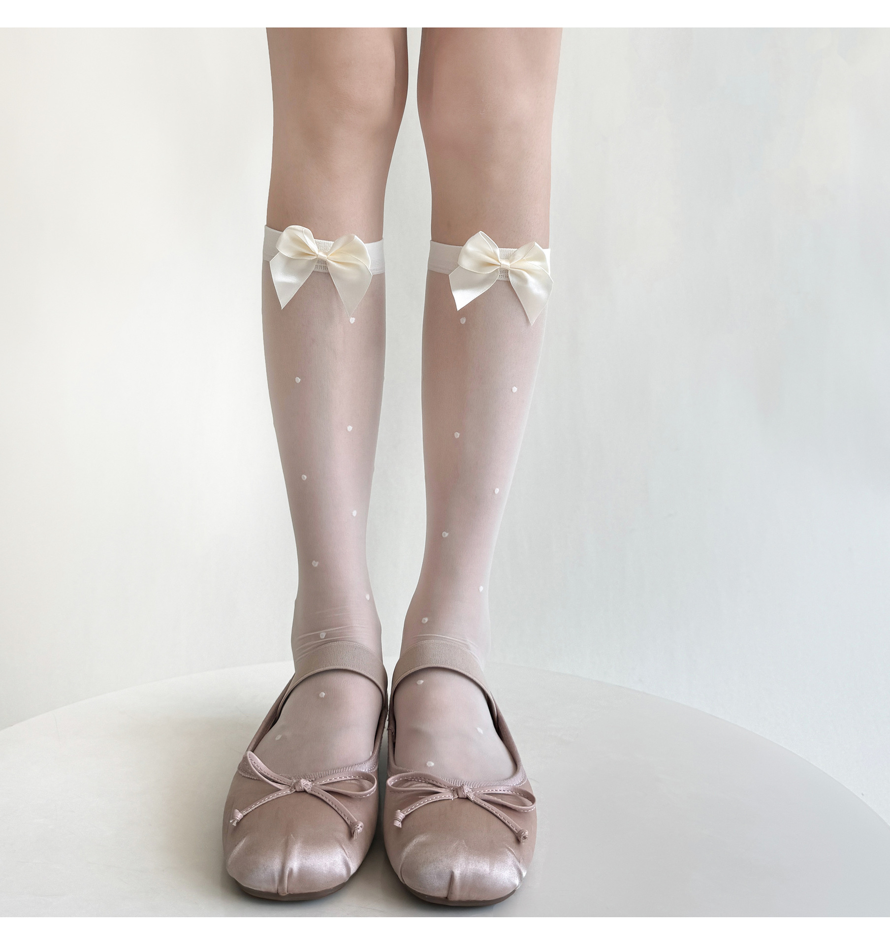 여름 매우 얇은 임의의 컷 폴카 점 고기 다리 양말을 통해 우유 흰색 달콤한 활 더미 소녀 양말스토어 가기