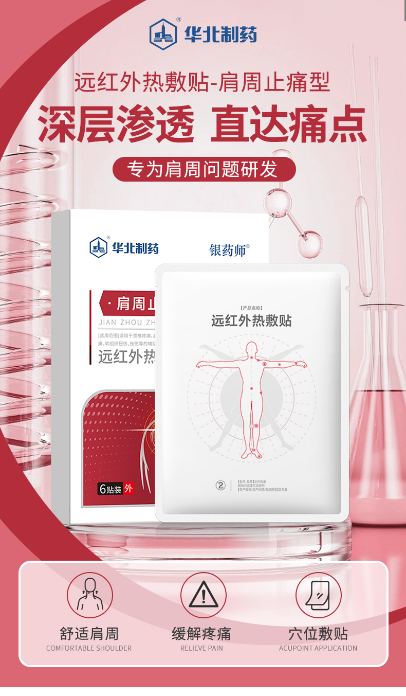 중국 북부 제약 원적외선 뜨거운 압축 석고 6 패치 상자는 뻣뻣한 어깨 약점과 통증을 완화합니다. 외부 뜨거운 압축 패치