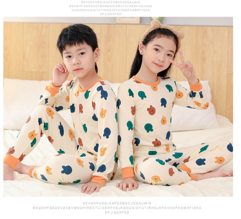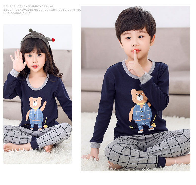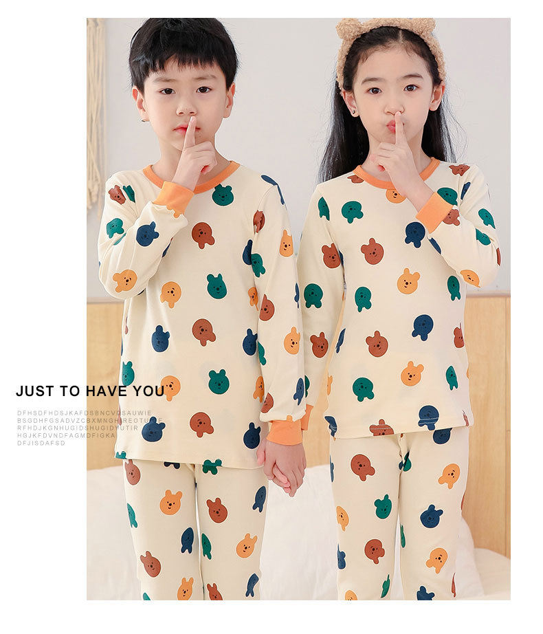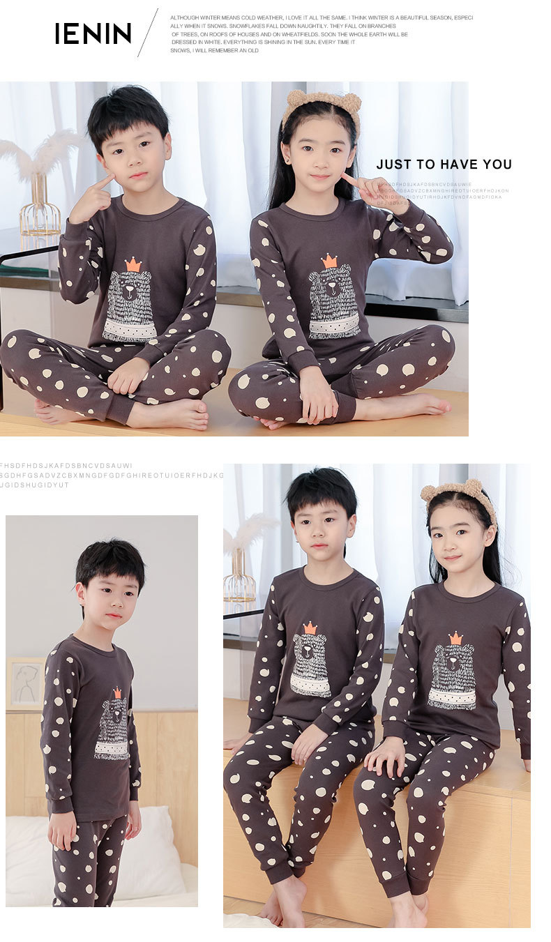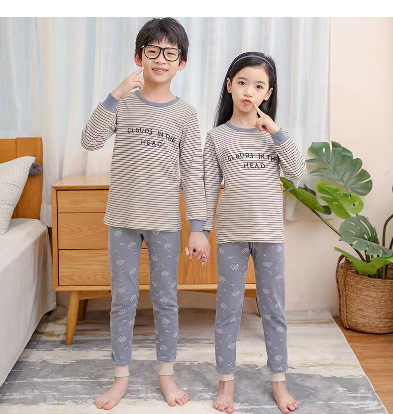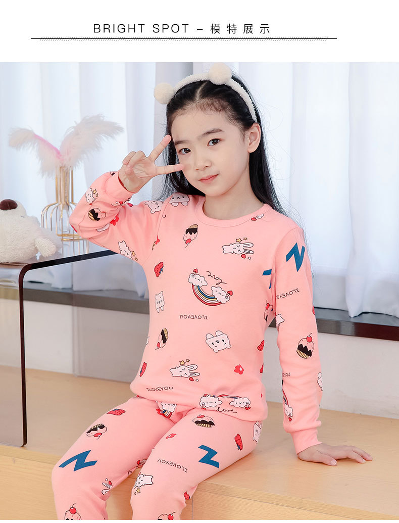 가을과 겨울 어린이 면화 속옷 세트 남학생과 여학생 가정 옷 따뜻한 가을 옷과 바지 2 조각 면화 스웨터스토어 가기