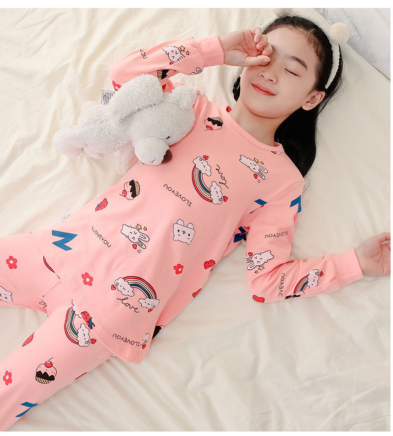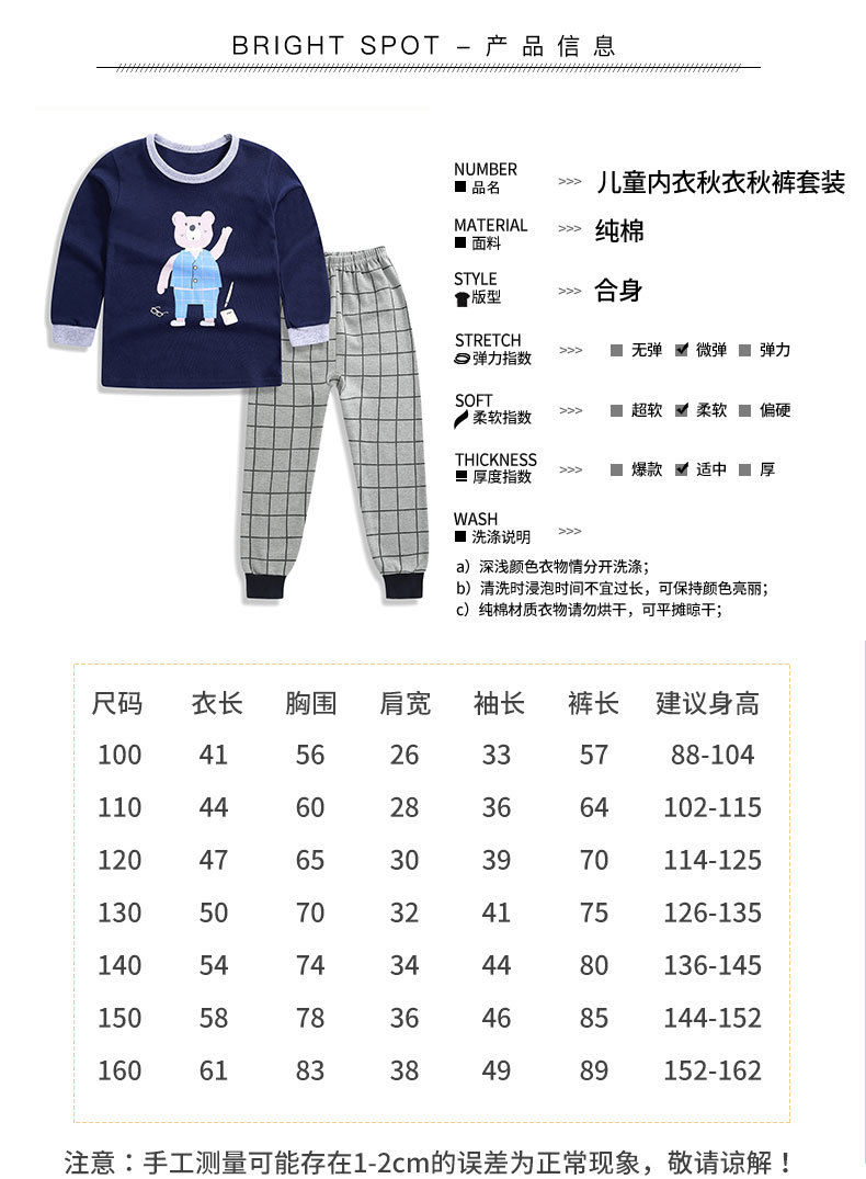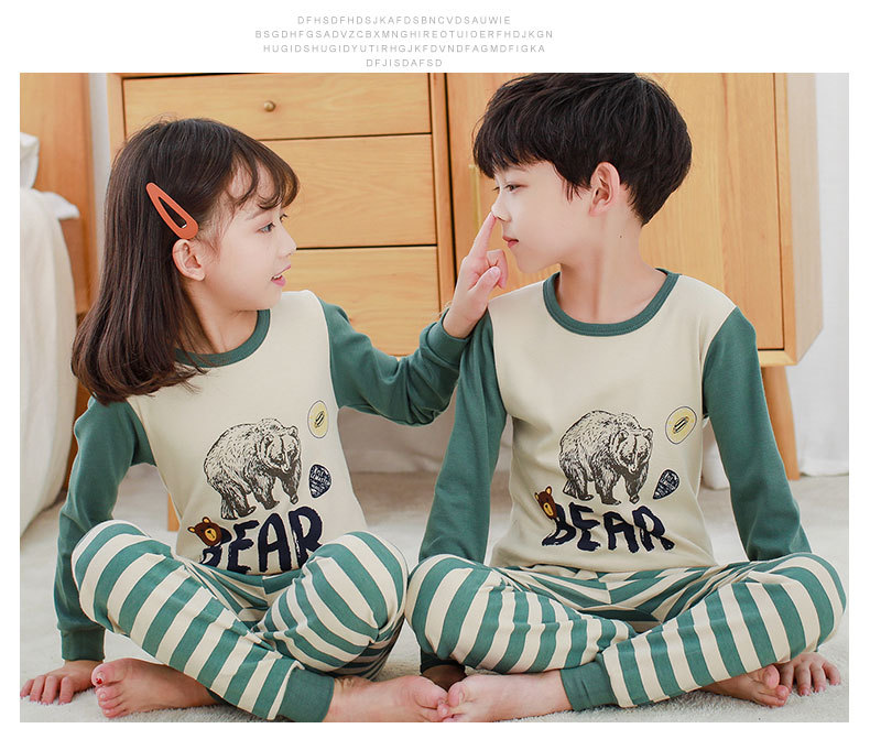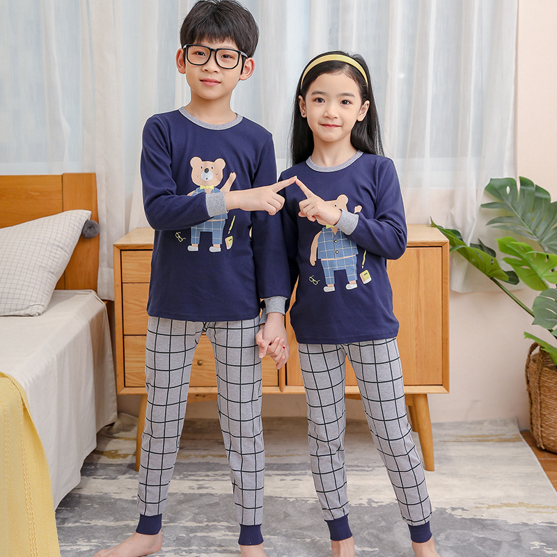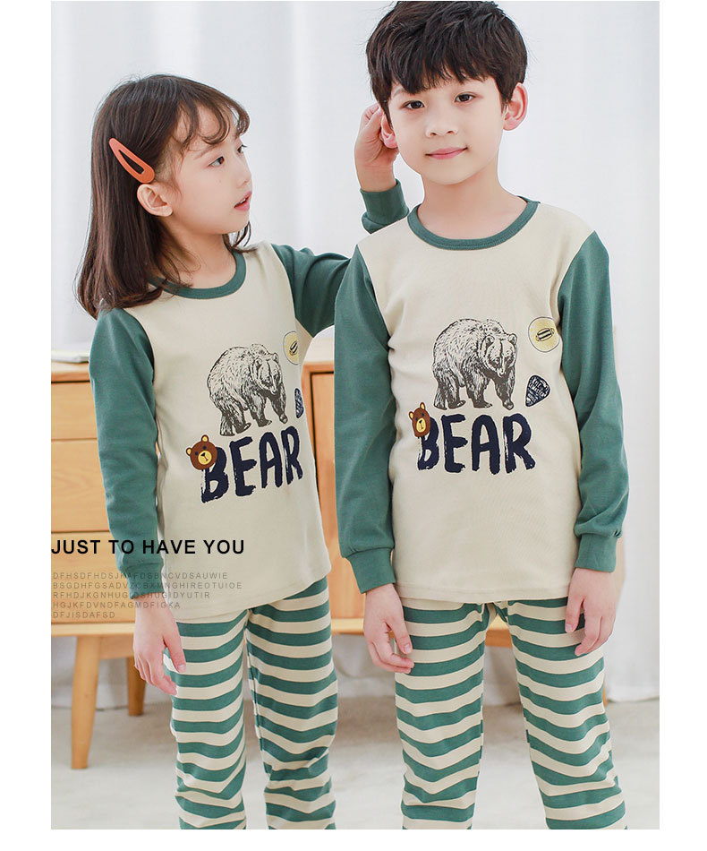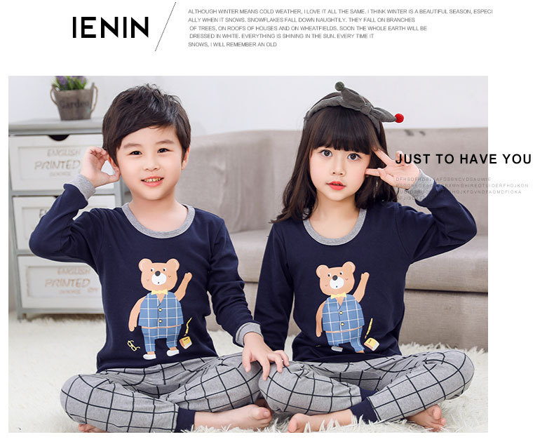 가을과 겨울 어린이 면화 속옷 세트 남학생과 여학생 가정 옷 따뜻한 가을 옷과 바지 2 조각 면화 스웨터스토어 가기