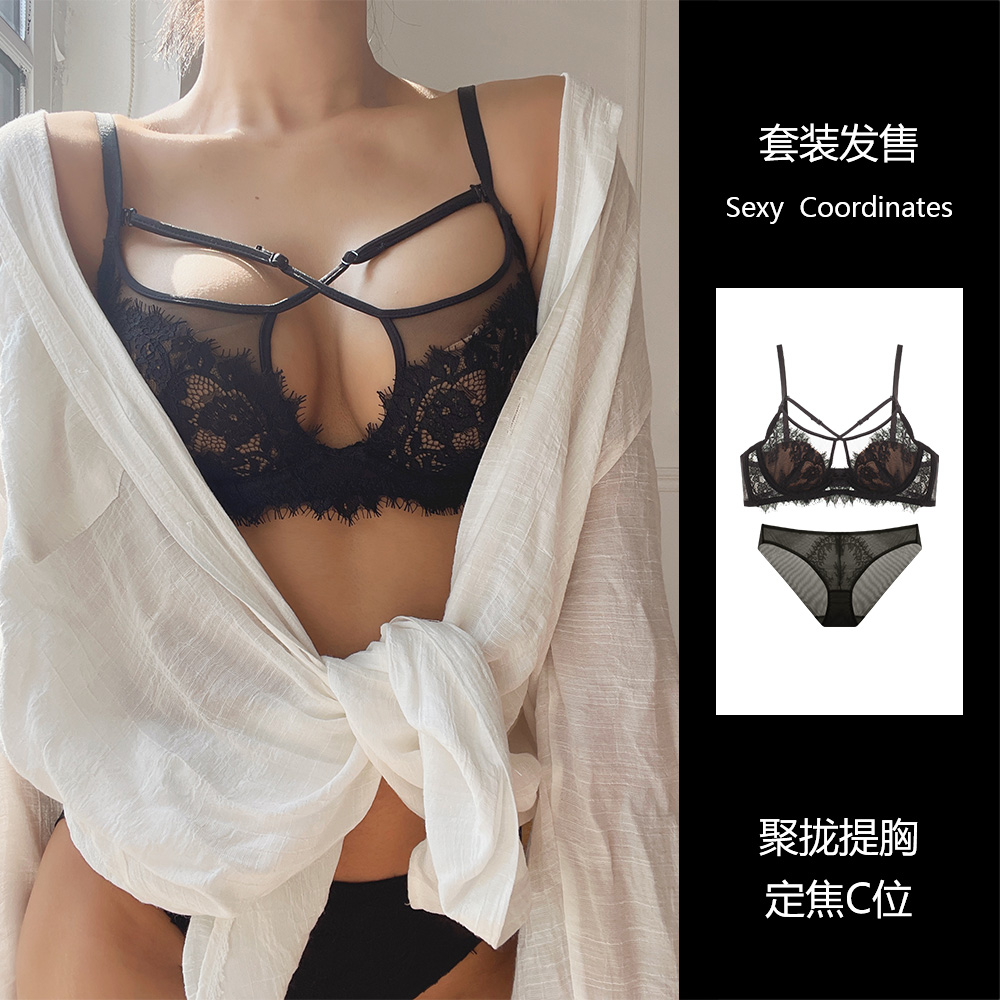 2024 새로운 유럽과 미국의 레이스 섹시한 푸시 업 브라 순수 소프트 스틸 링 감성 높은 가슴 작은 속옷 세트