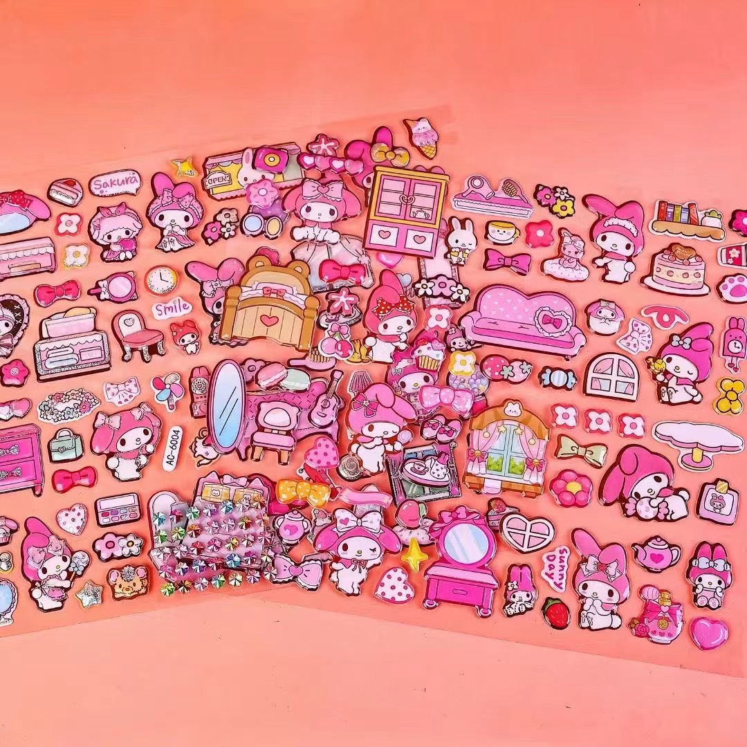 산리오 만화 이중층 3 차원 거품 스티커 청동 3D 거품 스티커 어린이 귀여운 보상 거품 스티커 도매