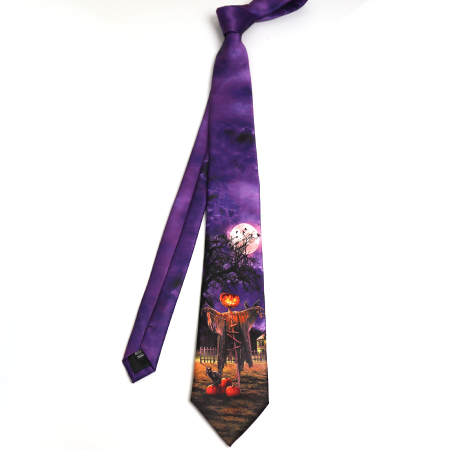 원래 디자인 블루 플래닛 7CM 인쇄 넥타이 별이 빛나는 하늘 우주 질감 개인화 된 예술적 해골 할로윈