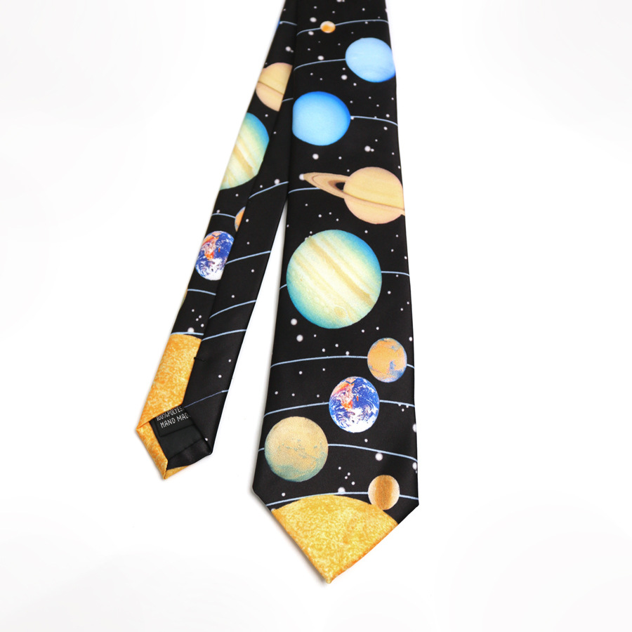 원래 디자인 블루 플래닛 7CM 인쇄 넥타이 별이 빛나는 하늘 우주 질감 개인화 된 예술적 해골 할로윈스토어 가기