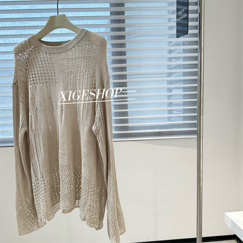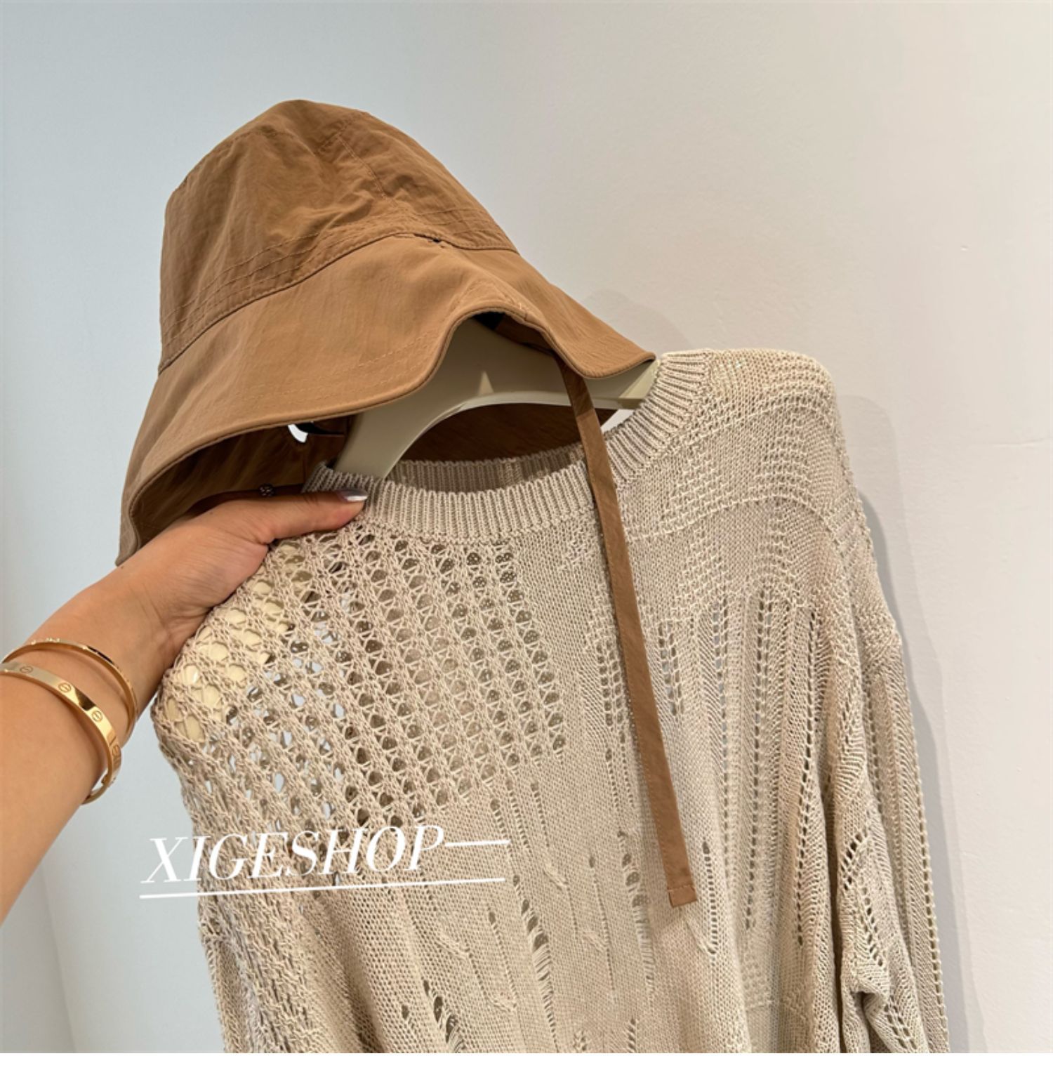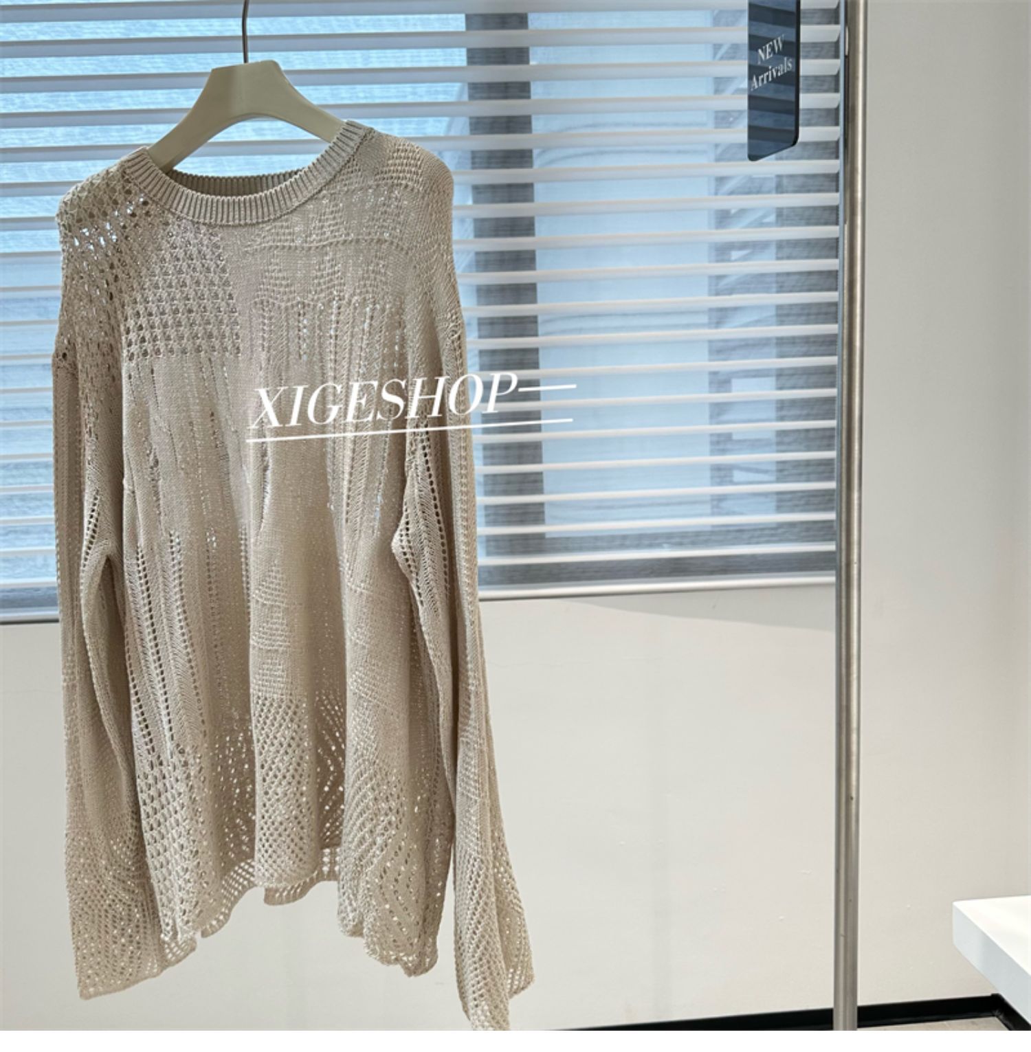 프랑스 레트로 니트웨어 여성의 초가을 2024 새로운 느슨한 게으른 스타일 불규칙한 빈 라운드 넥 블라우스 탑스토어 가기