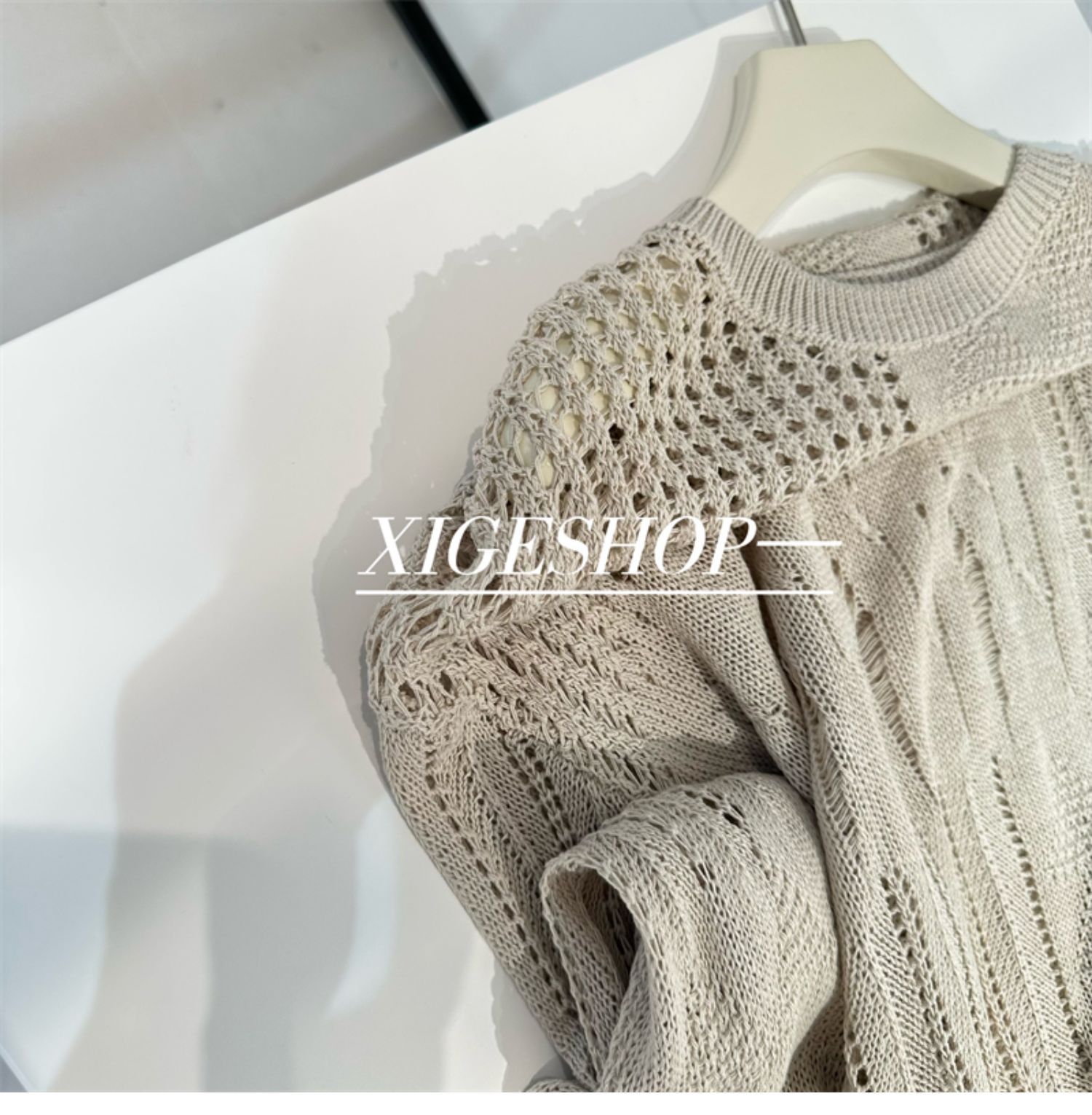 프랑스 레트로 니트웨어 여성의 초가을 2024 새로운 느슨한 게으른 스타일 불규칙한 빈 라운드 넥 블라우스 탑