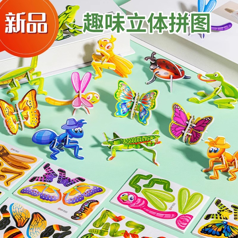 크리 에이 티브 3D 입체 퍼즐 만화 곤충 퍼즐 DIY 조기 교육 조립 학생 보상 작은 선물 디지털 퍼즐스토어 가기