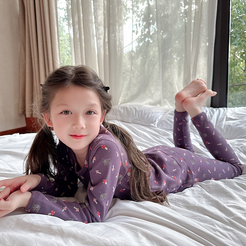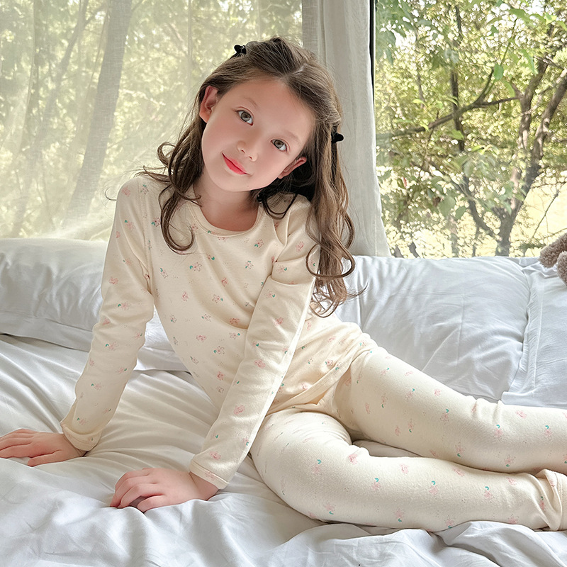 2024 가을 겨울 어린이 가을 옷과 바지 뼈없는 속옷 양모 풀 랙 홈 옷 세트 아기 만화 잠옷