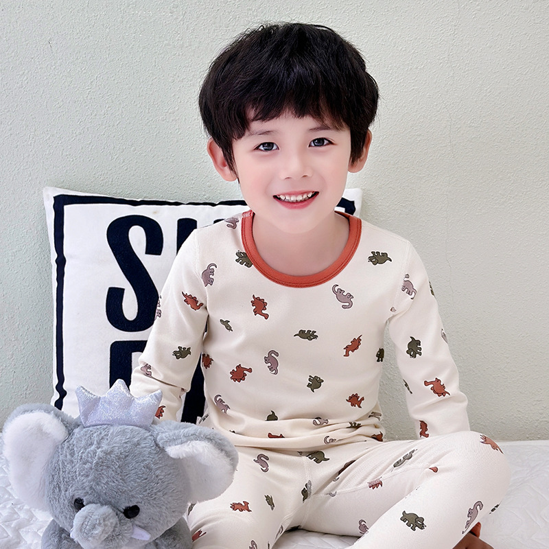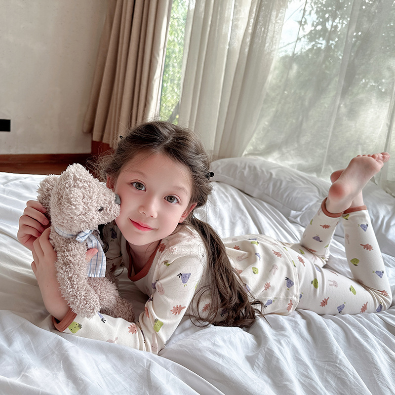 2024 가을 겨울 어린이 가을 옷과 바지 뼈없는 속옷 양모 풀 랙 홈 옷 세트 아기 만화 잠옷스토어 가기