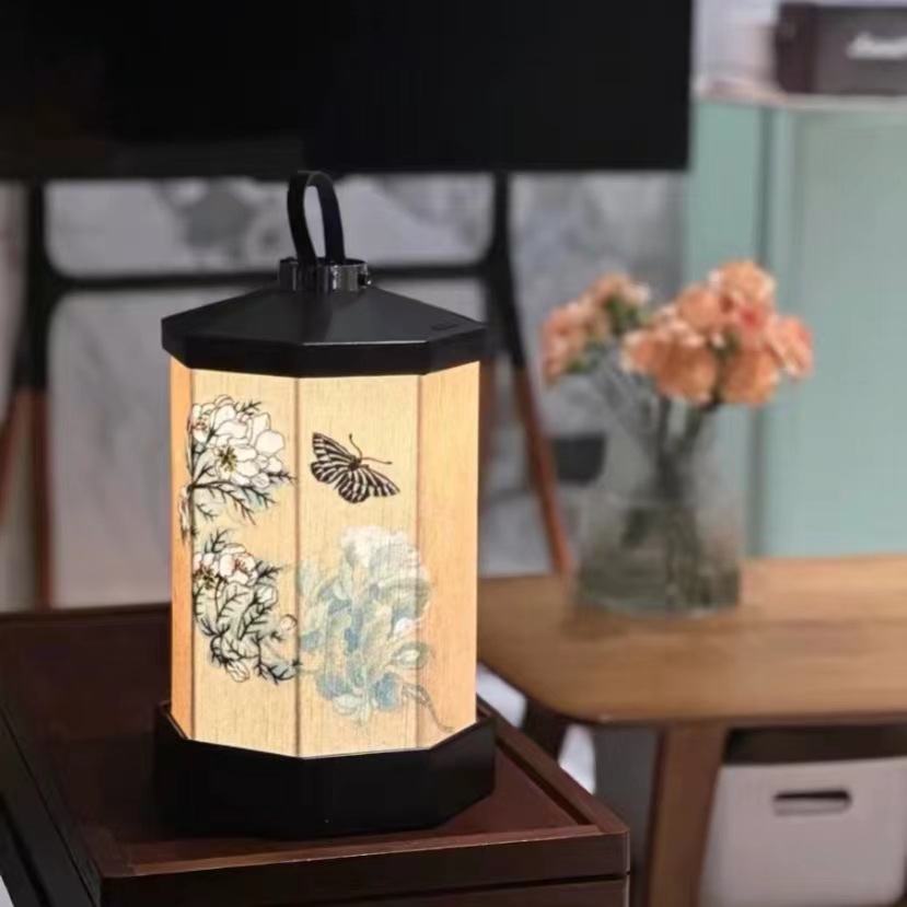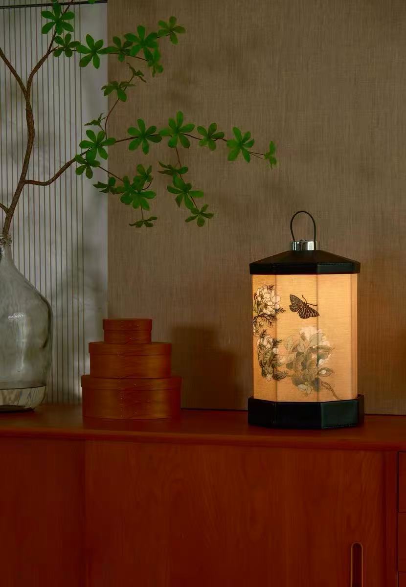 知春来触控无线充电手提台灯卧室床头灯高级感夜灯刺绣新中式台灯