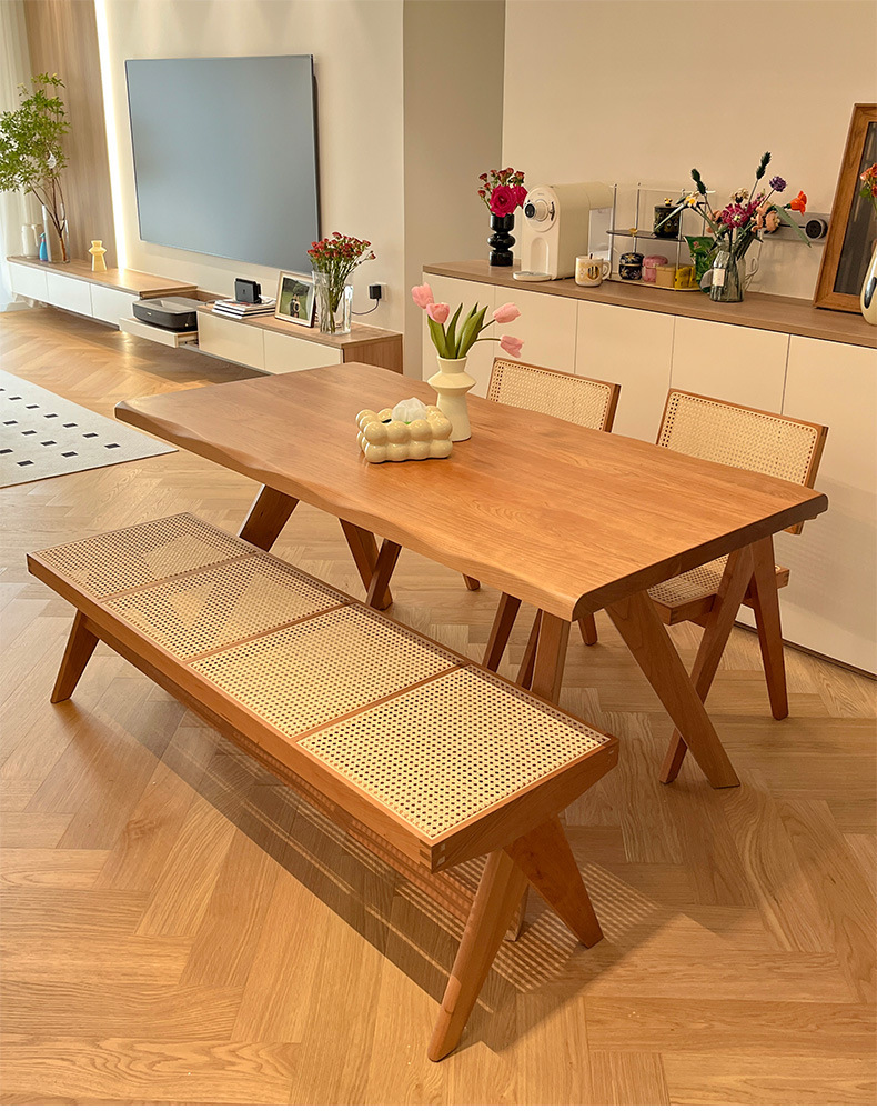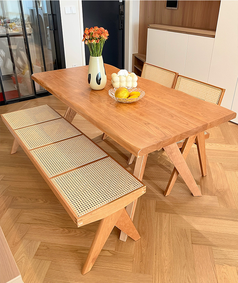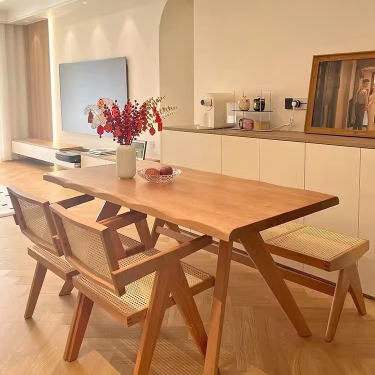 로그 스타일 식탁 및 의자 조합 노르딕 솔리드 우드 식탁 직사각형 간단한 고래 식탁 거실 테이블 작업대