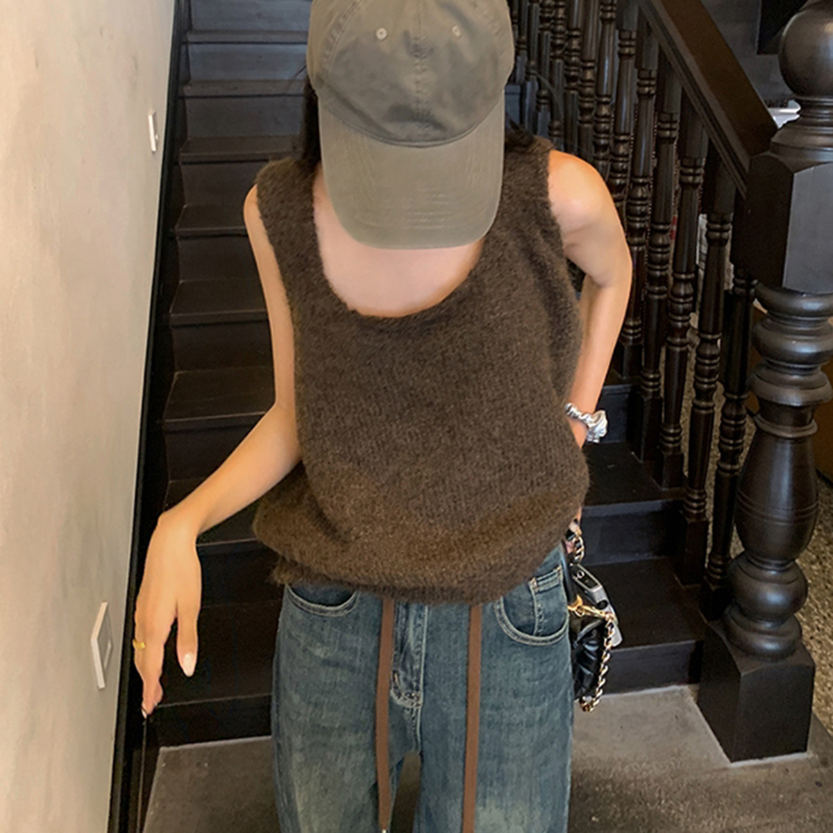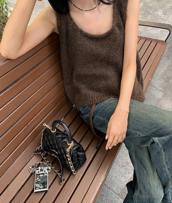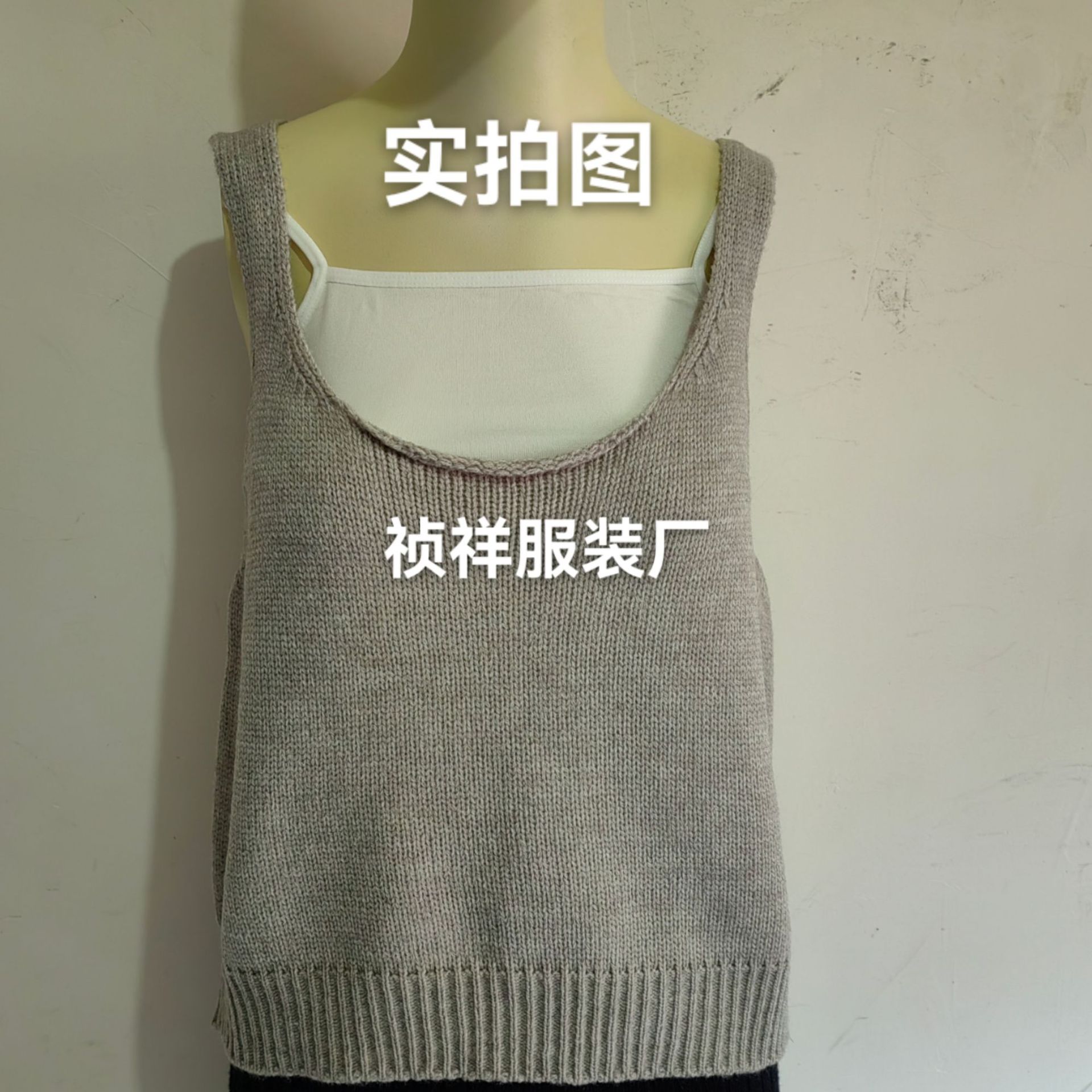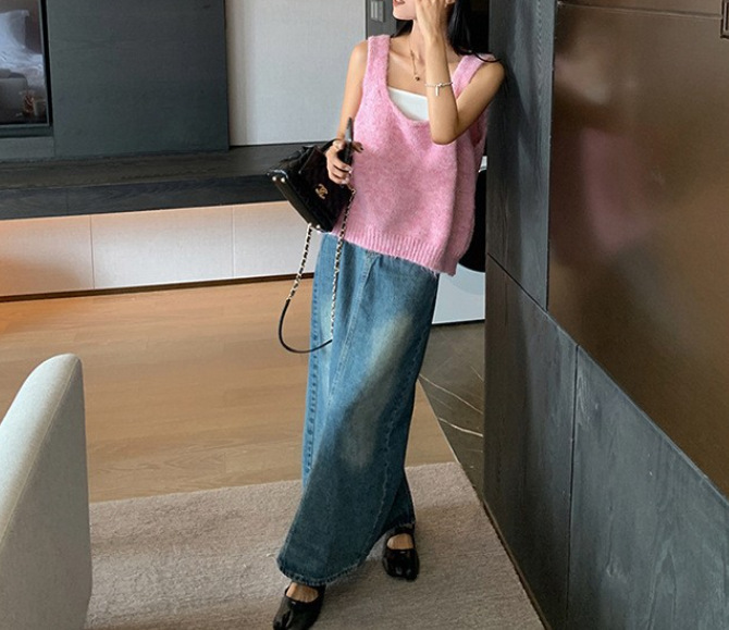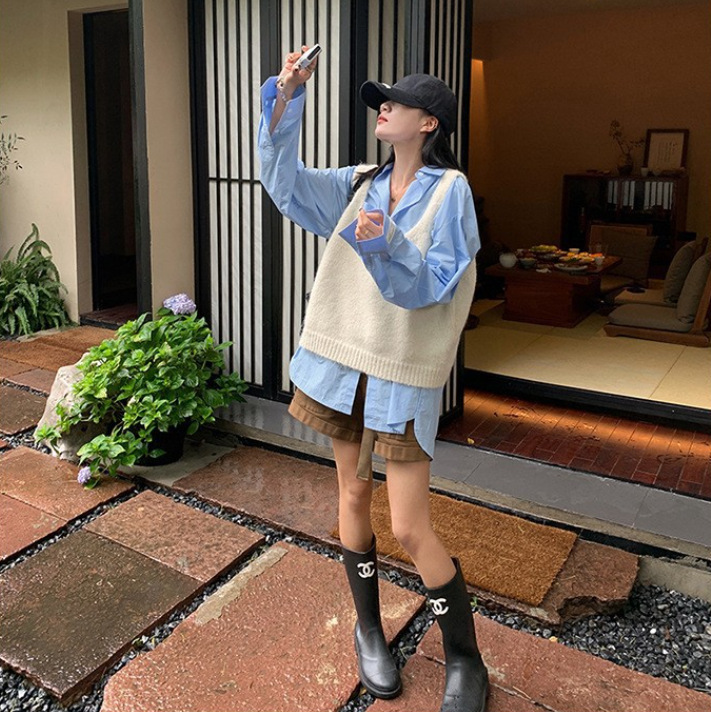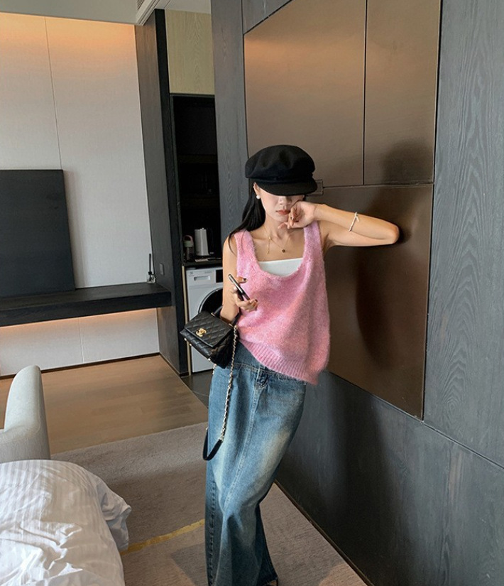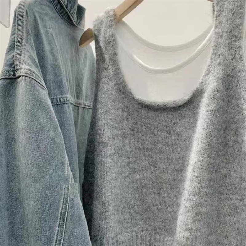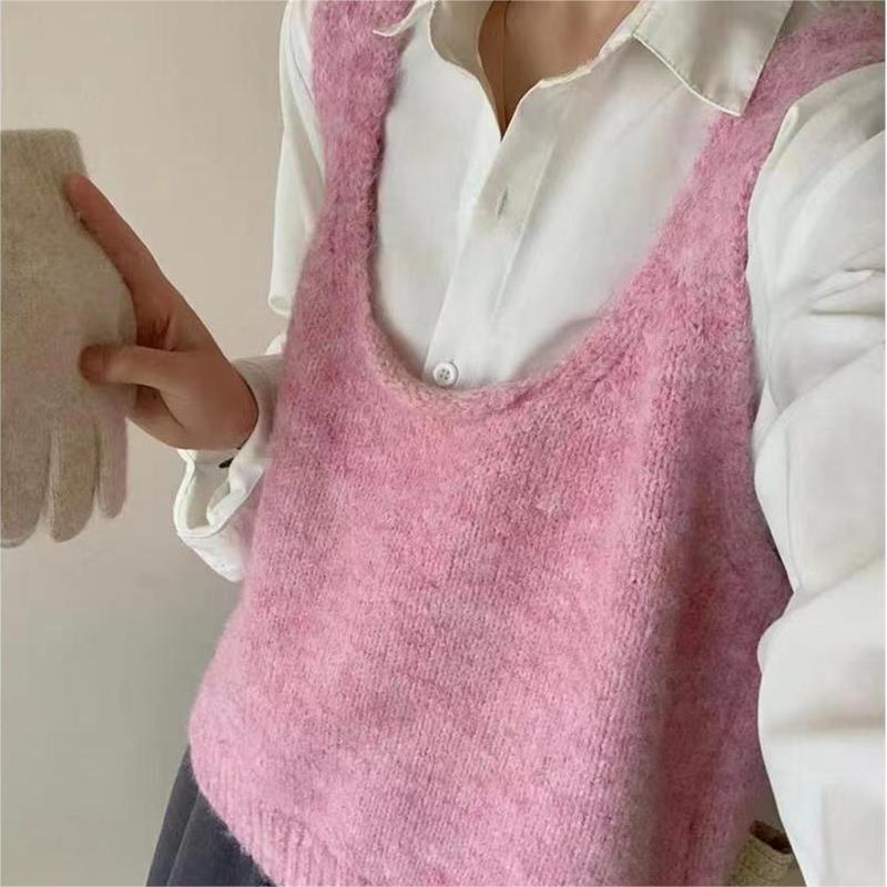 봄과 가을 쌓인 U-넥 니트 조끼 여자 느슨한 게으른 스타일 올매치 한국식 솔리드 컬러 풀오버 카미솔스토어 가기