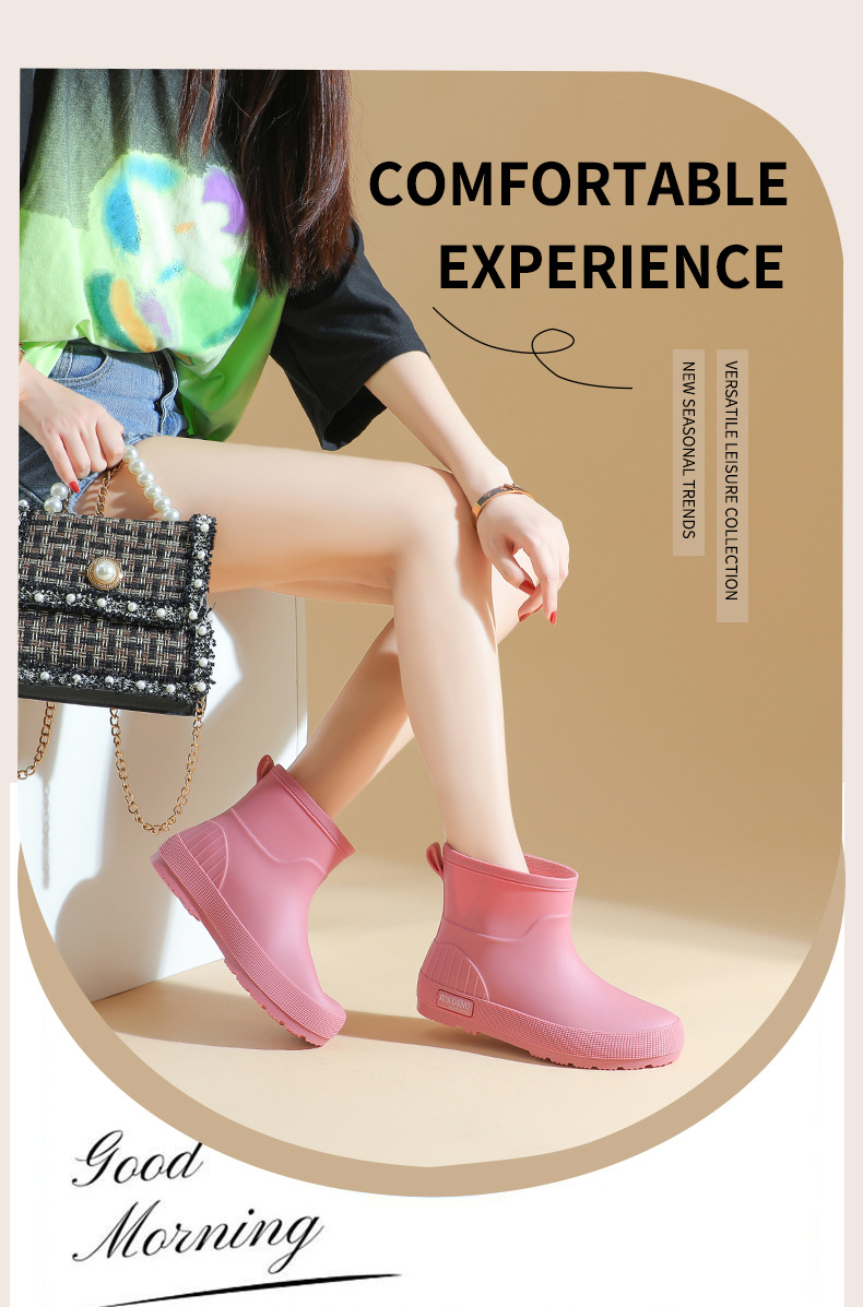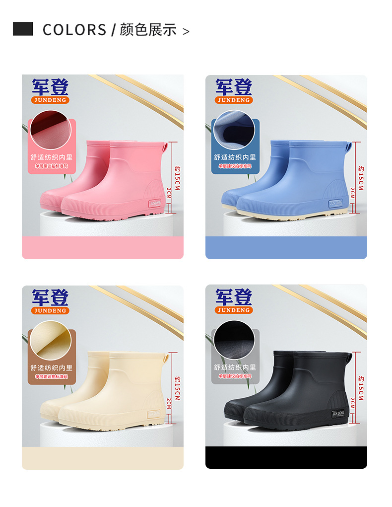 새로운 국경 일본 스타일 짧은 비 신발 여성 패션 비 신발 경량 미끄럼 방지 주방 워터 슈즈 여성용 외부