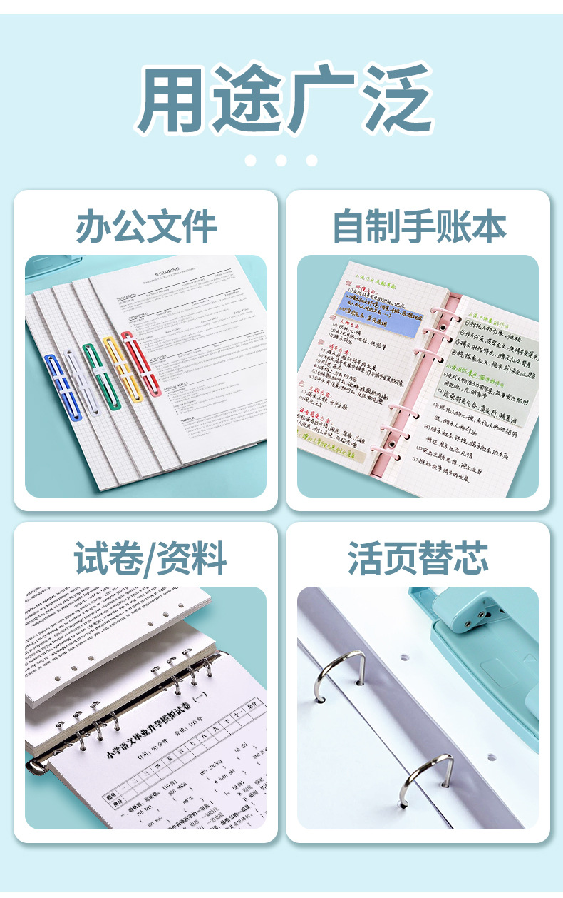 Huajie 공장 도매 Morandi 컬러 금속 펀치 느슨한 잎 책 내부 페이지 펀치 금융 문서 바인더