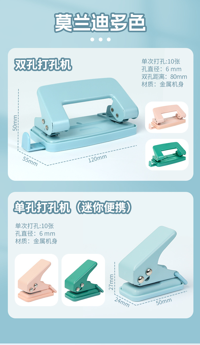 Huajie 공장 도매 Morandi 컬러 금속 펀치 느슨한 잎 책 내부 페이지 펀치 금융 문서 바인더스토어 가기