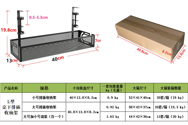 카운터 마무리 랙 행 스토리지 랙 소켓 주최자 아래 케이블 및 와이어 관리 트레이 랙 아래의 국경 간 책상스토어 가기