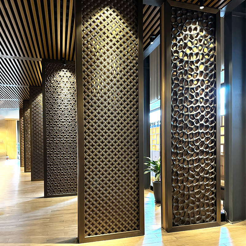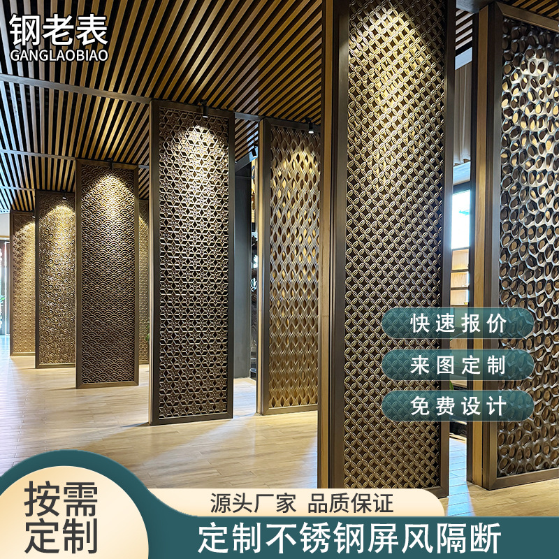 스테인리스 스틸 판매부 홀 스크린 호텔 알루미늄 조각 칸막이 벽 신중국풍 입구 가림막 맞춤형 현관 레이저 커팅 디자인