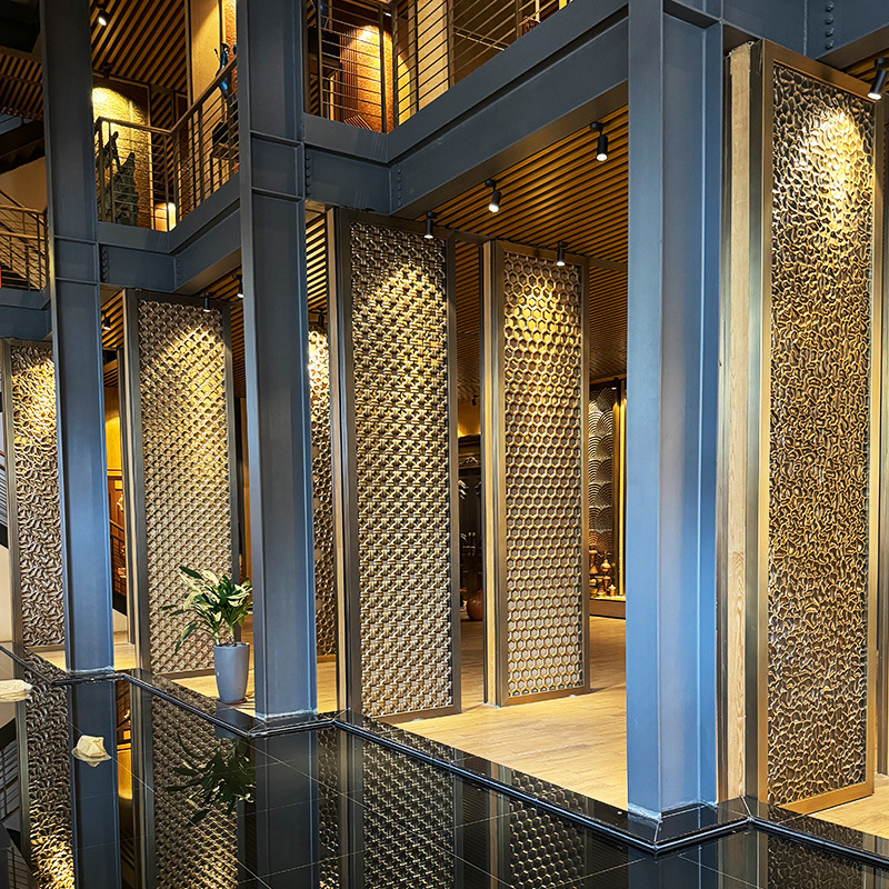 스테인리스 스틸 판매부 홀 스크린 호텔 알루미늄 조각 칸막이 벽 신중국풍 입구 가림막 맞춤형 현관 레이저 커팅 디자인스토어 가기