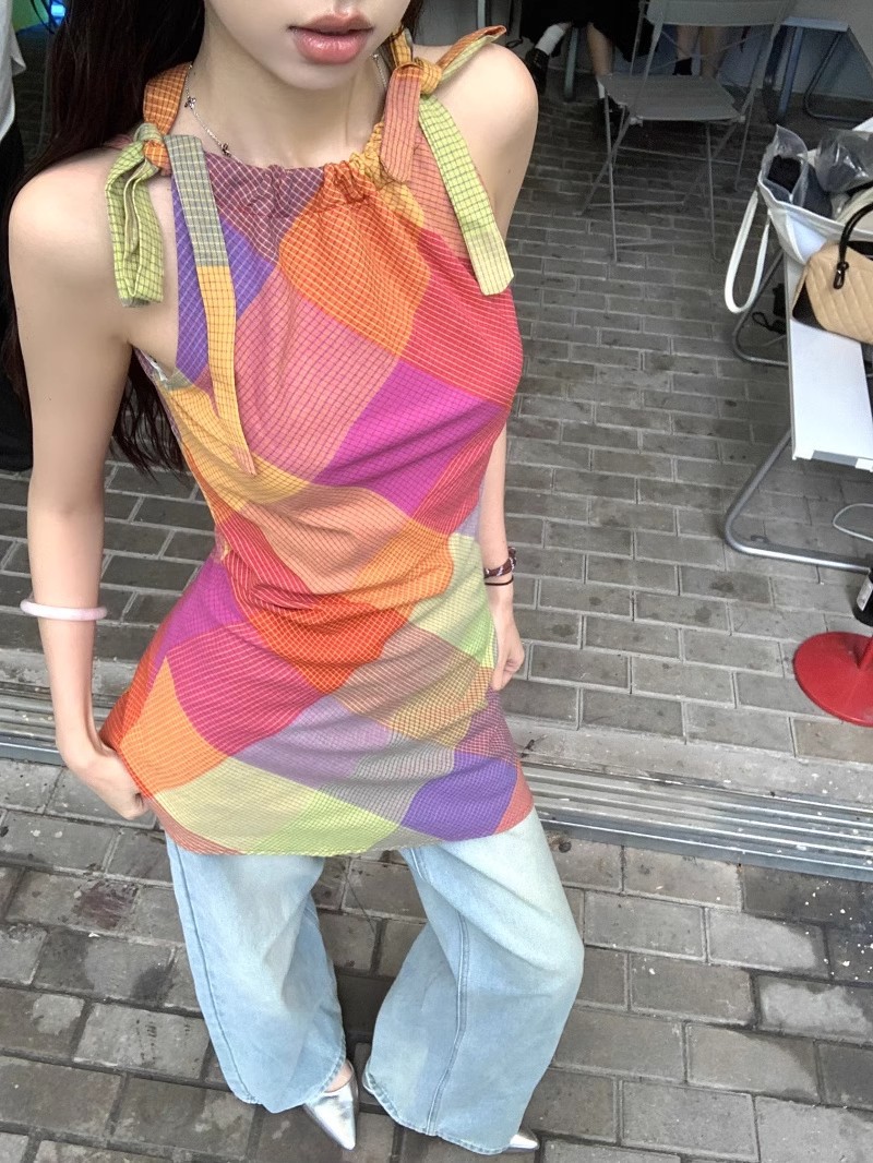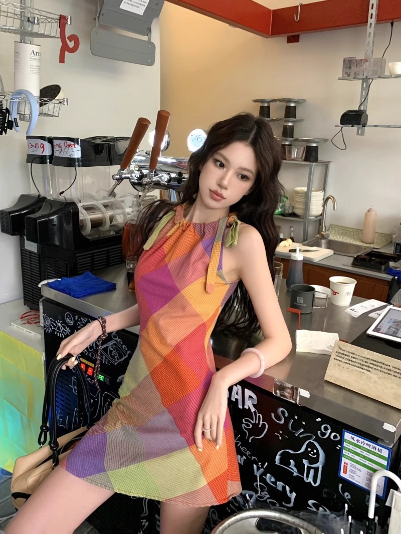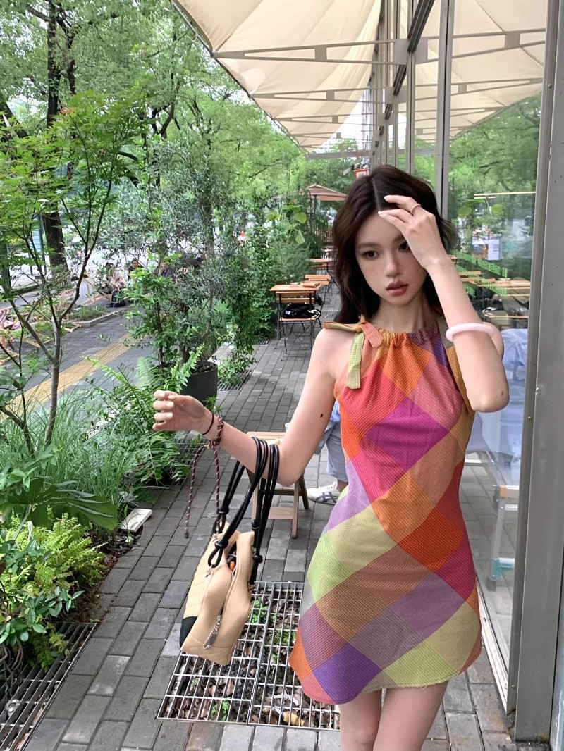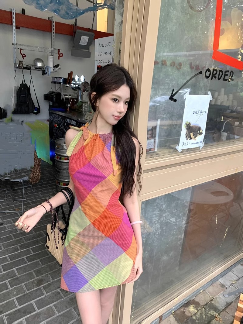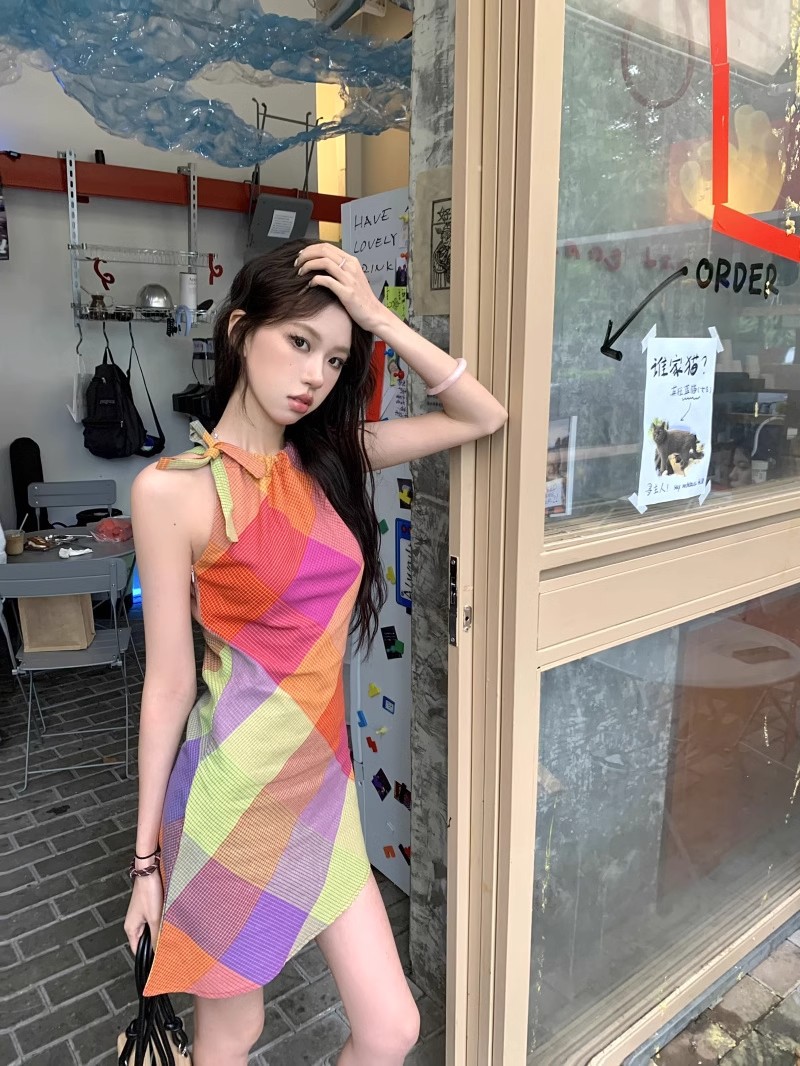 도파민 컬러 유료 스커트 틈새 스트랩 원피스 여성의 2024 여름 새로운 허리 슬리밍 짧은 치마스토어 가기