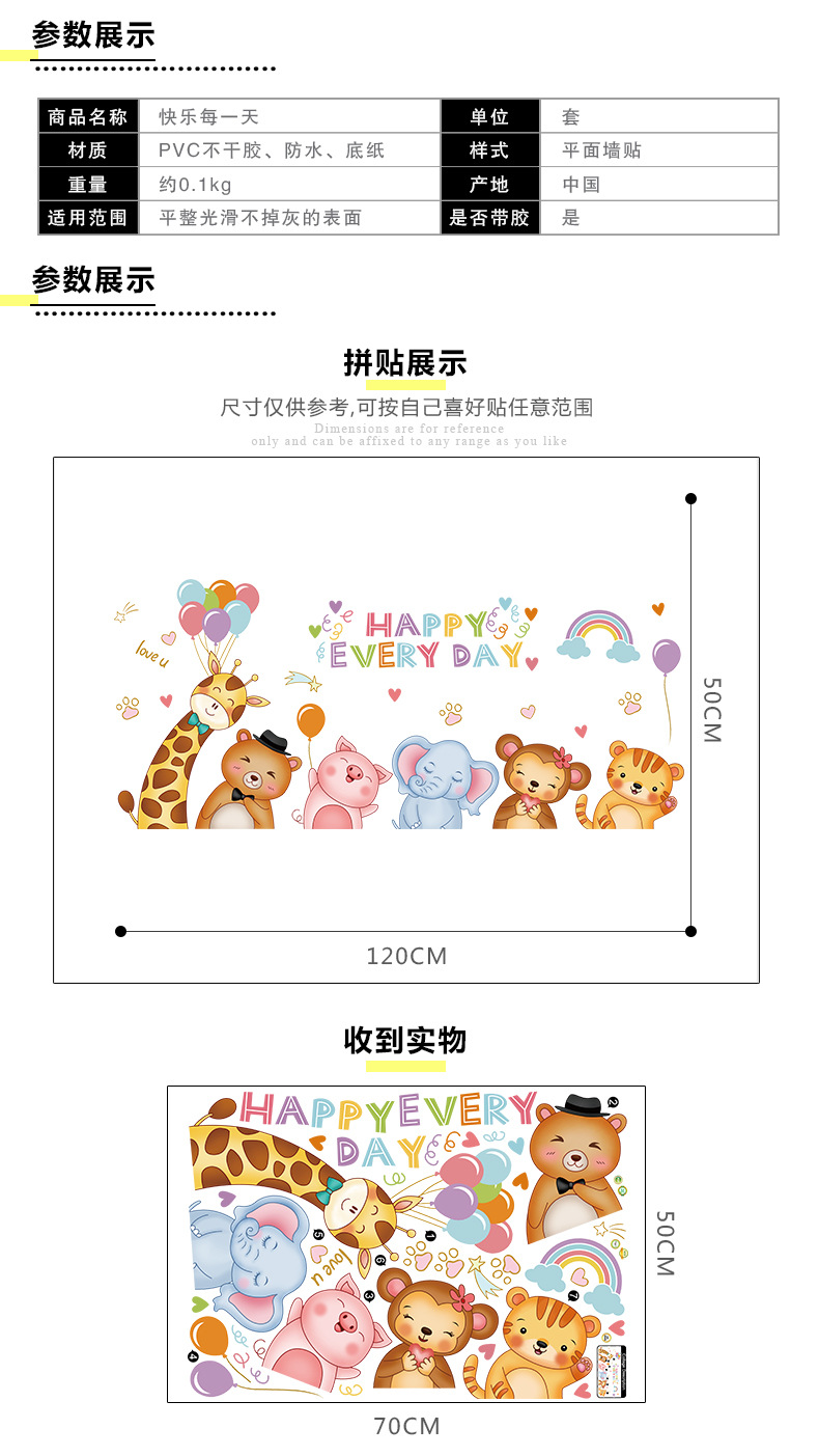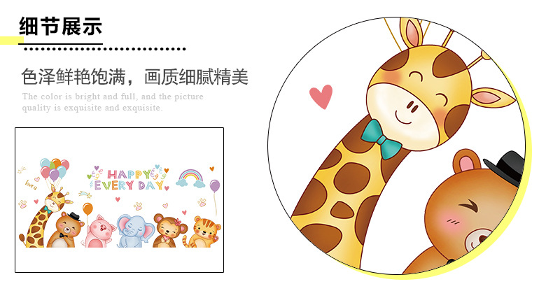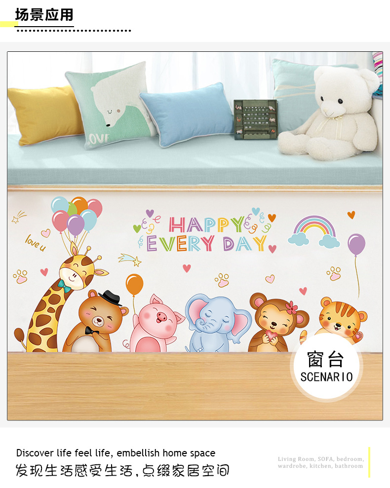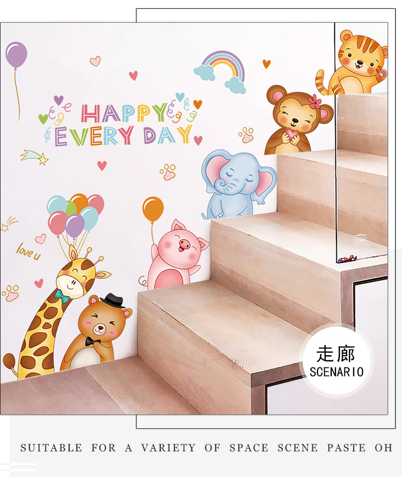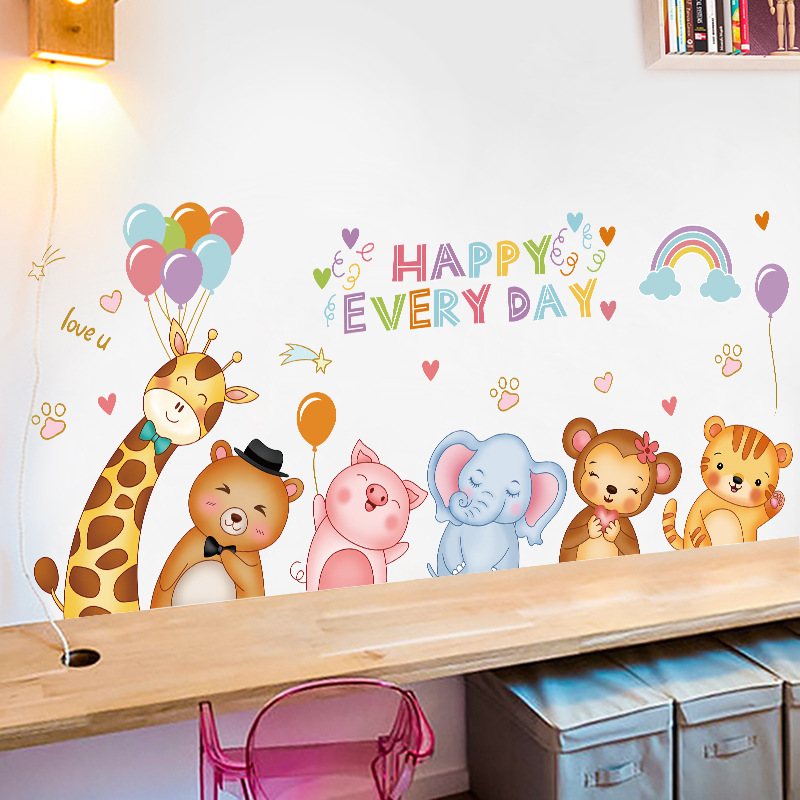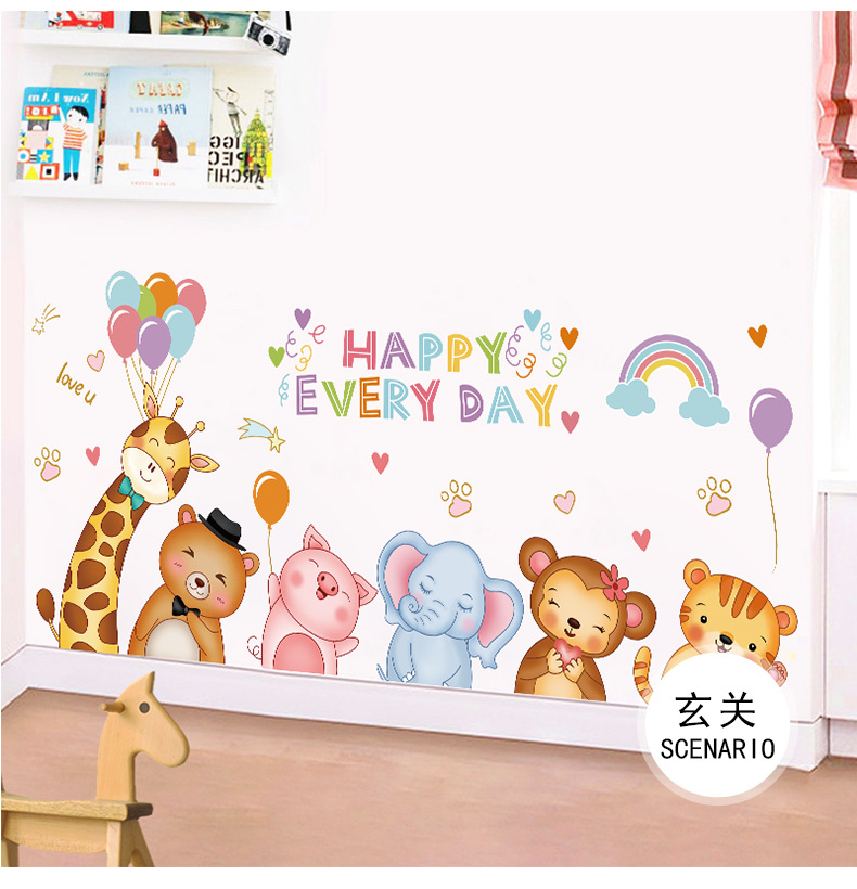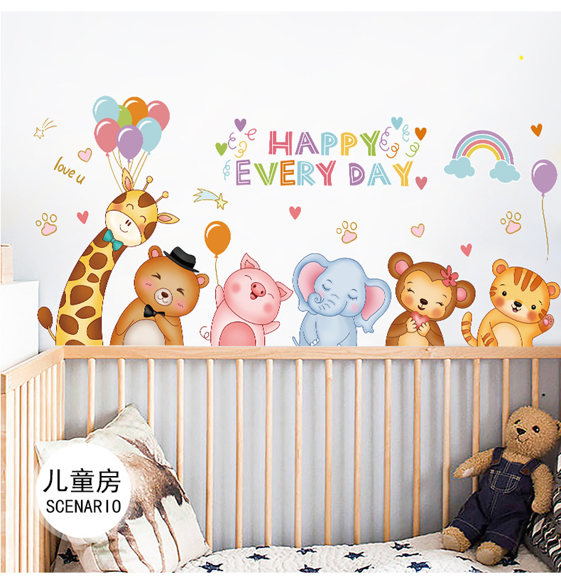 만화 동물 스티커 어린이 아기 방 침실 벽 벽 레이아웃 장식 스티커 벽 스티커 벽 그림 벽지