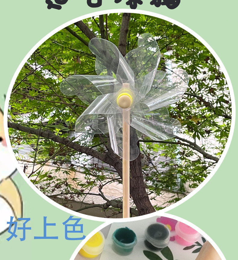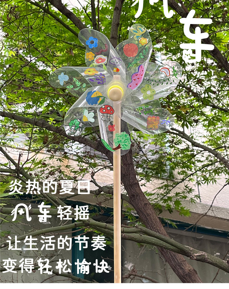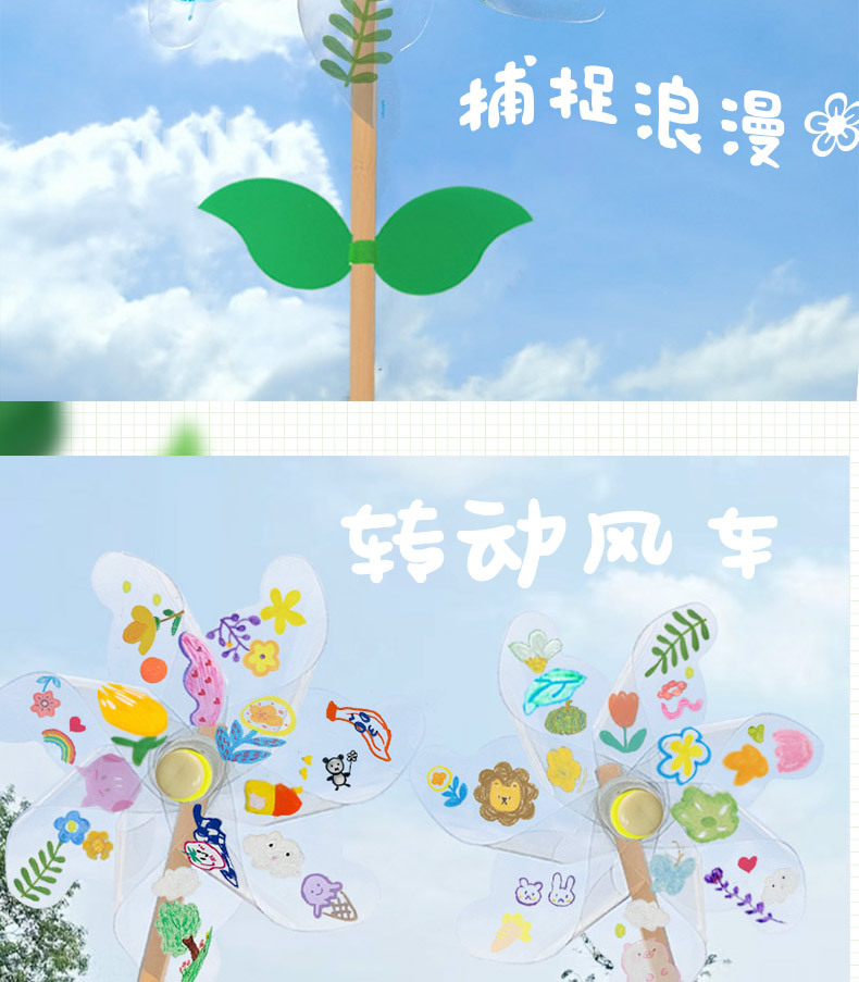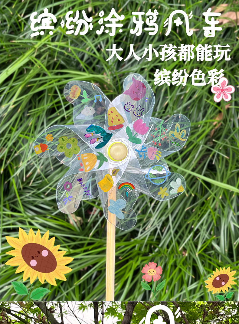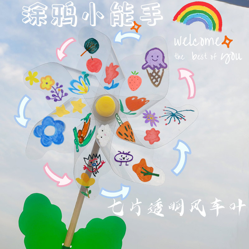 어린이 손으로 손으로 선물 낙서 투명 풍차 diy 소재 가방 어린이 창조적 인 손으로 그린 빈 풍차 야외 도매스토어 가기