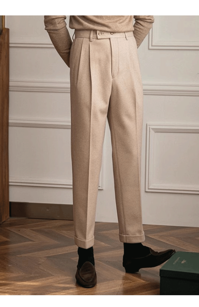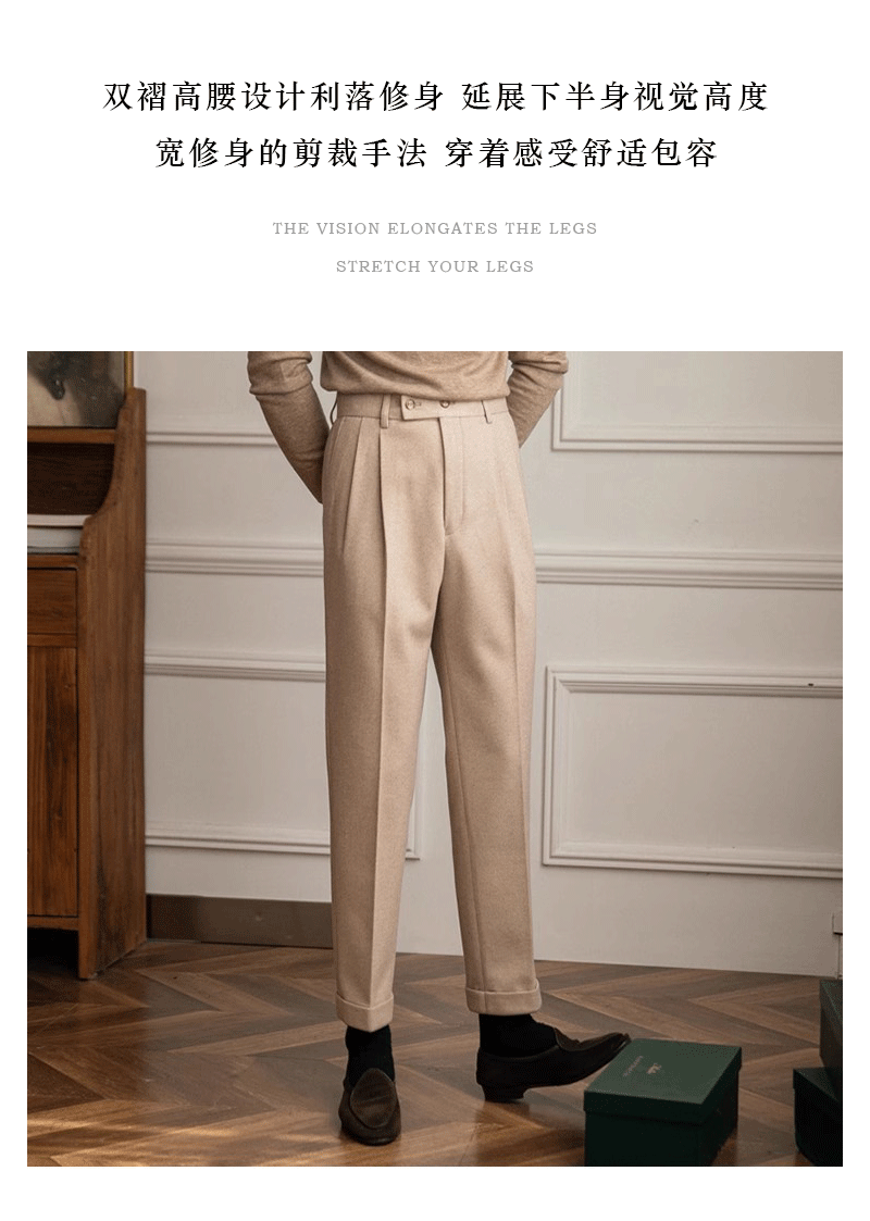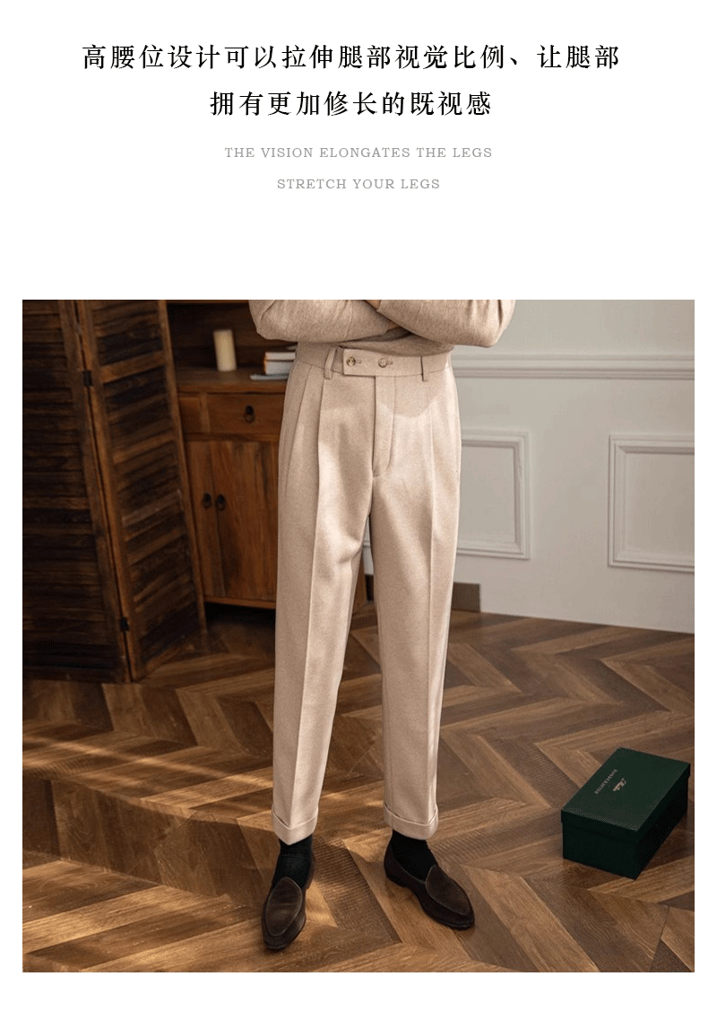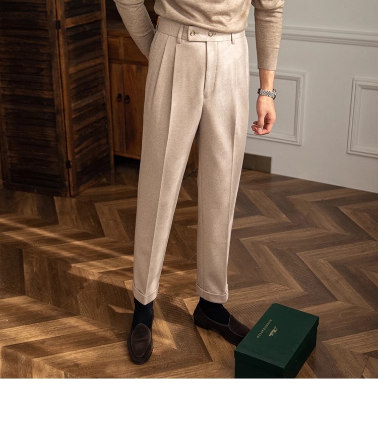 남자 바지 가벼운 성숙한 영국 복고풍 사업 나폴리 펜던트 스트레이트 슬림 핏 캐주얼 바지 남자 통근스토어 가기