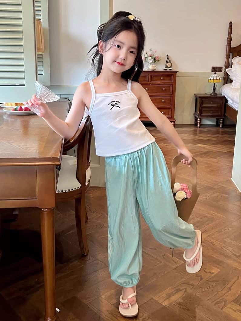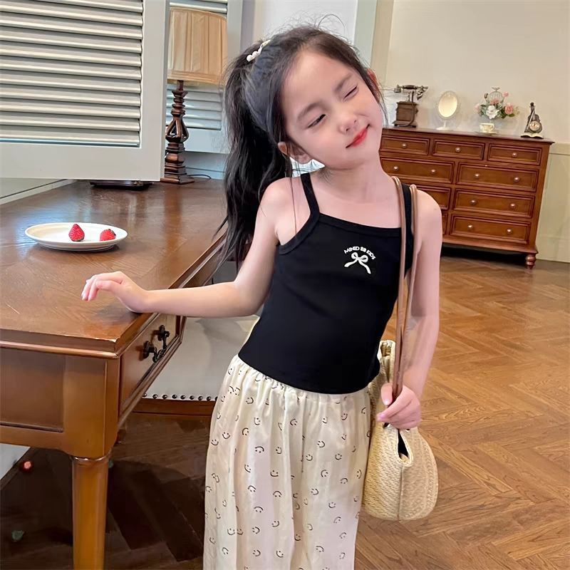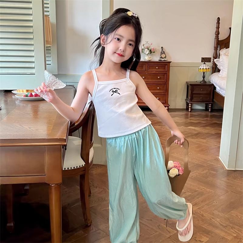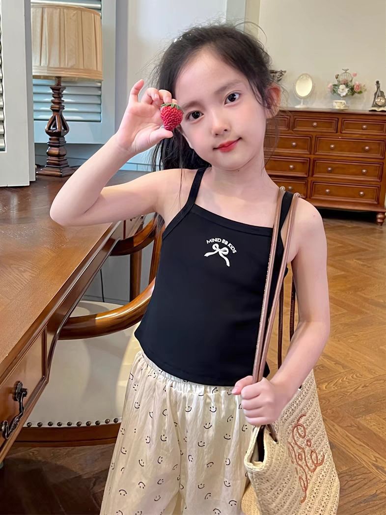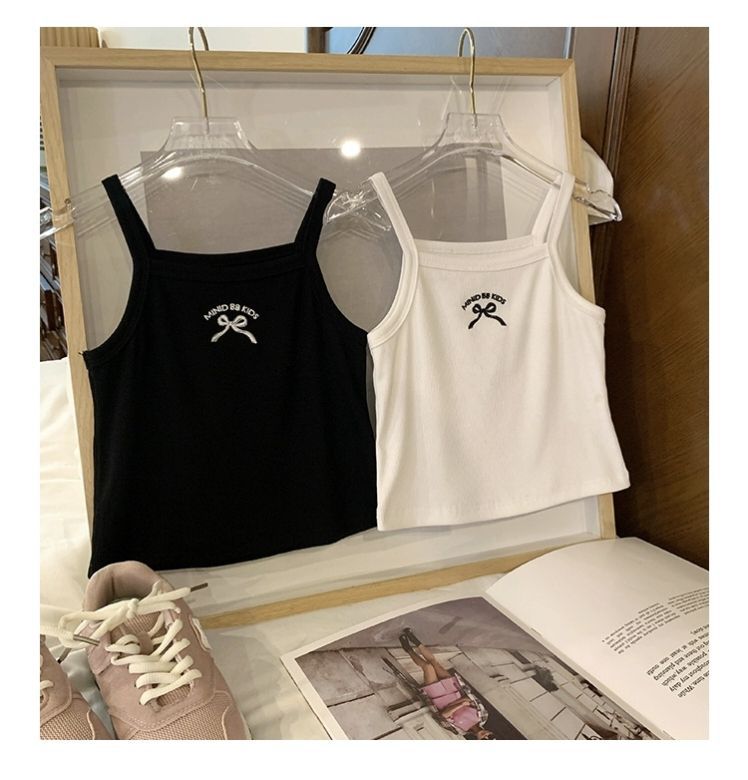 여자 여름 짧은 작은 슬링 자수 올 매치 슬림 핏 한국 스타일 어린이 아이스 실크 얇은 스타일리스트 조끼 기본 셔츠