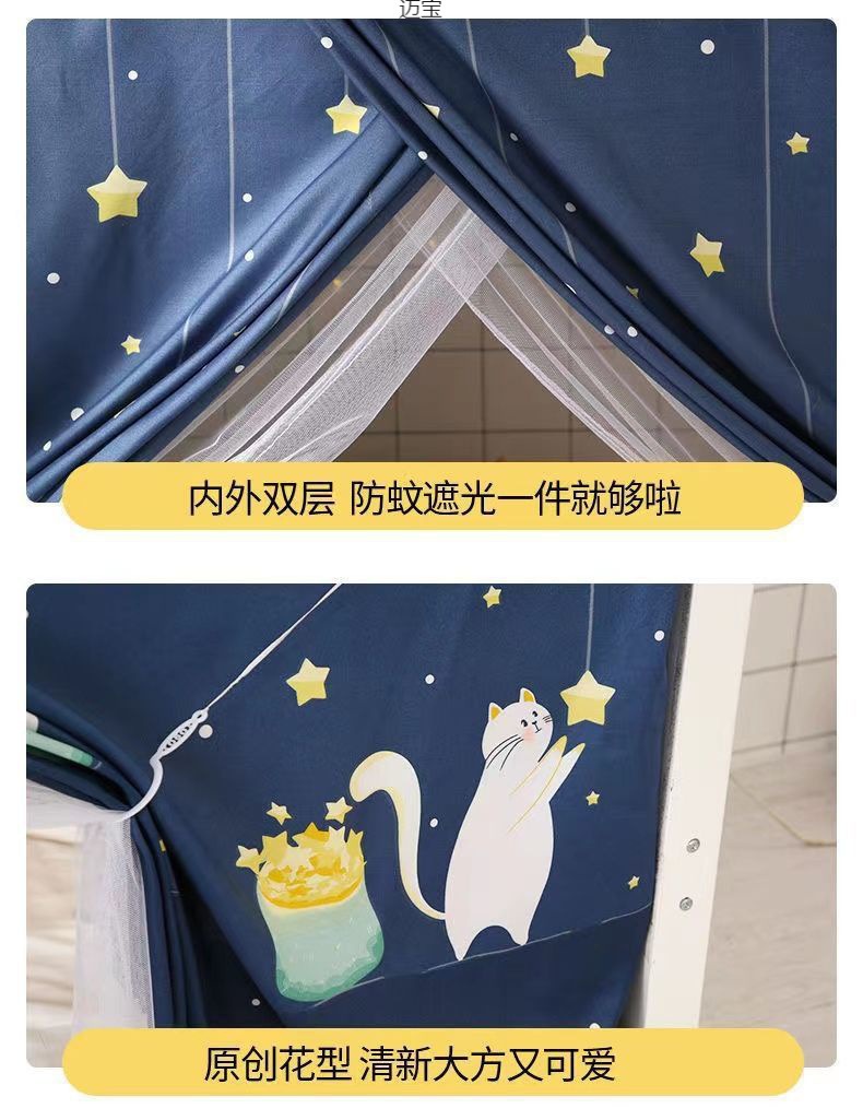맞춤형 대학생 기숙사 이층 침대 남녀 침대 커튼 모기장 일체형 침대 커튼 인 스타일 블랙아웃 커튼