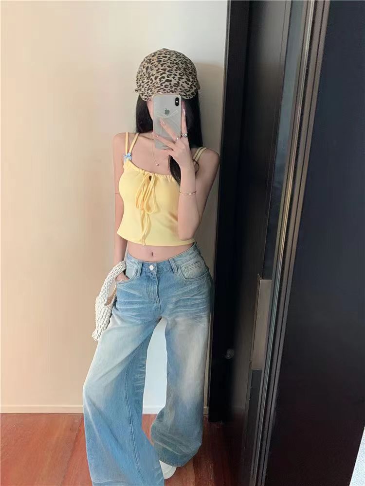 여름 미국식 스파이스 소녀 활 가슴 패드 Camisole 트렌디 한 틈새 슬림 핏 살을 덮고있는 아름다운 뒷모습