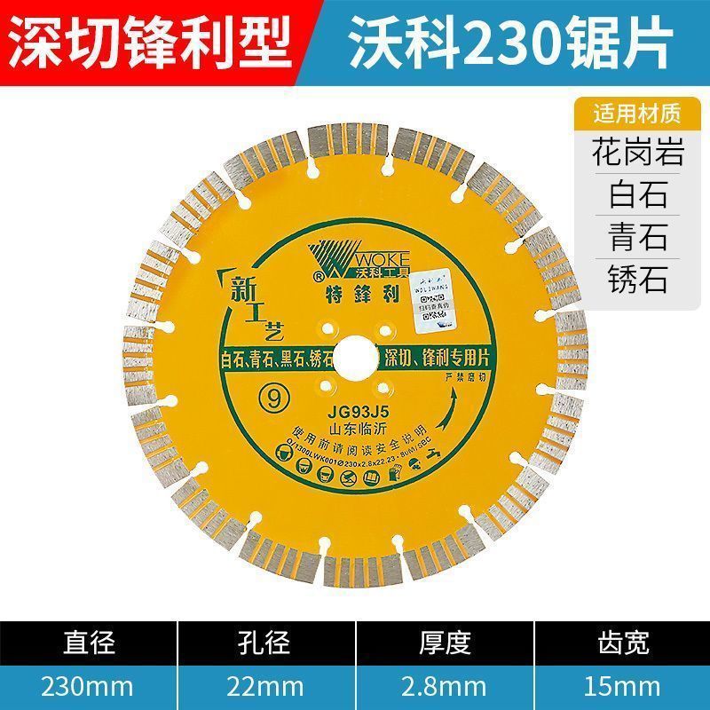 Woko 230 다이아몬드는 블레이드 화강암 돌 콘크리트 벽 드라이 슬라이싱 앵글 그라인더 커팅 블레이드를 보았다스토어 가기