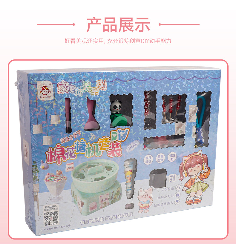 DIY 솜사탕 기계 세트 어린이 크림 접착제 스티커 장난감 놀이 집 가구 수제 재료 패키지 도매